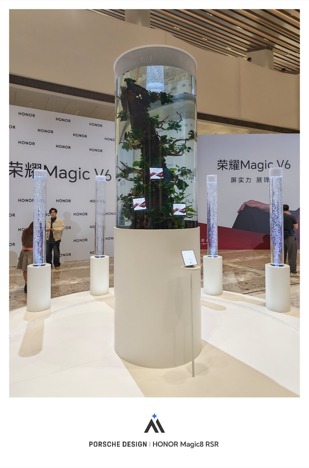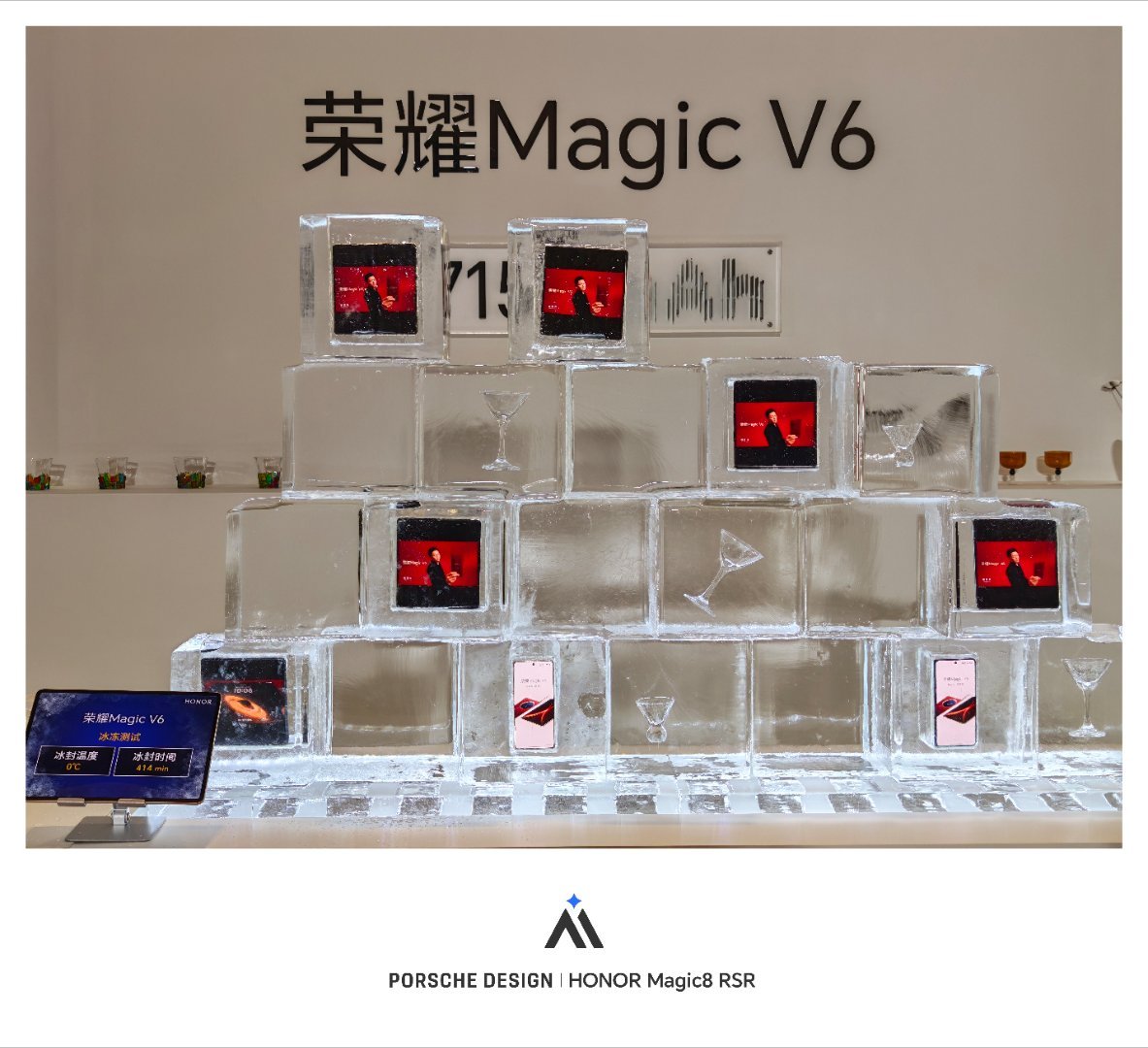 荣耀Magic V6到底有多硬核,在场馆外就要经受水泡、冰冻和拳击击打的测试。发