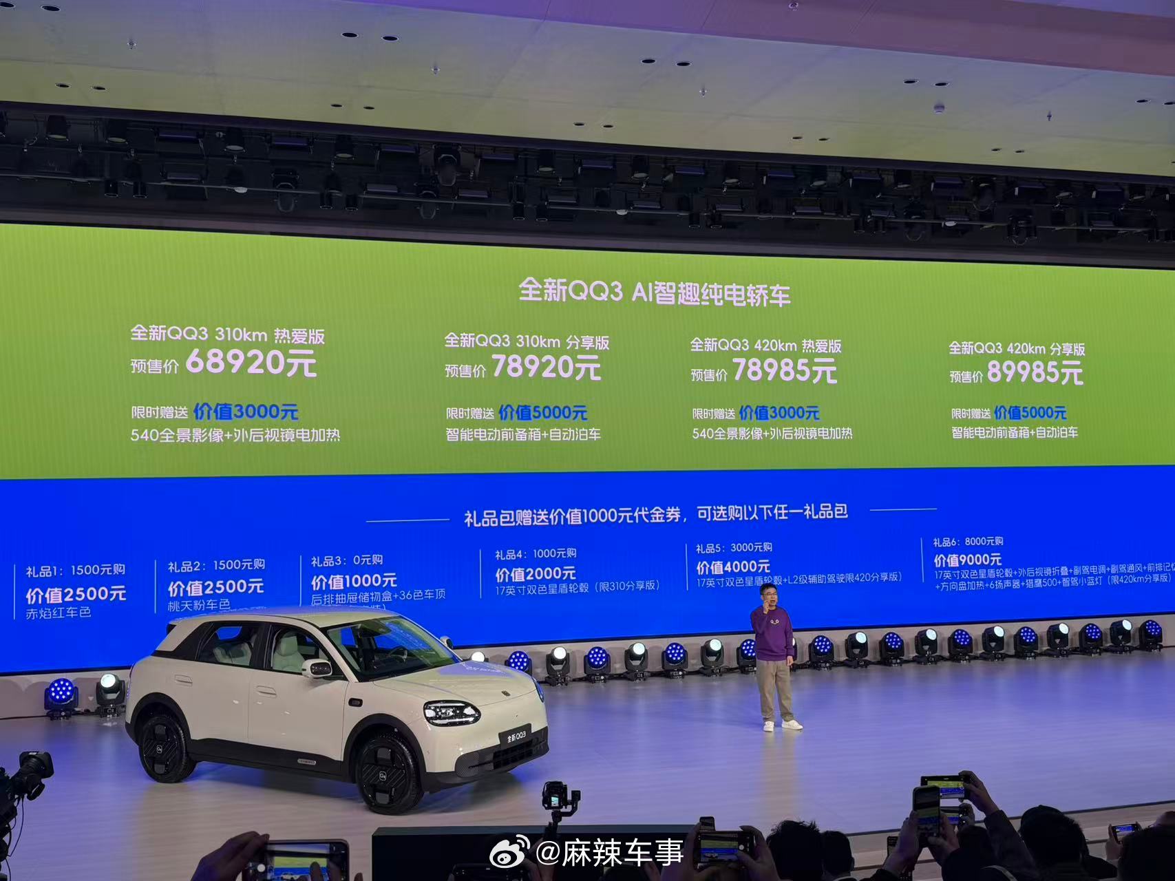让生活出彩,让快乐加倍,既能城市代步,又能奔赴诗与远方。68920元起售,奇瑞全新QQ3开启预售