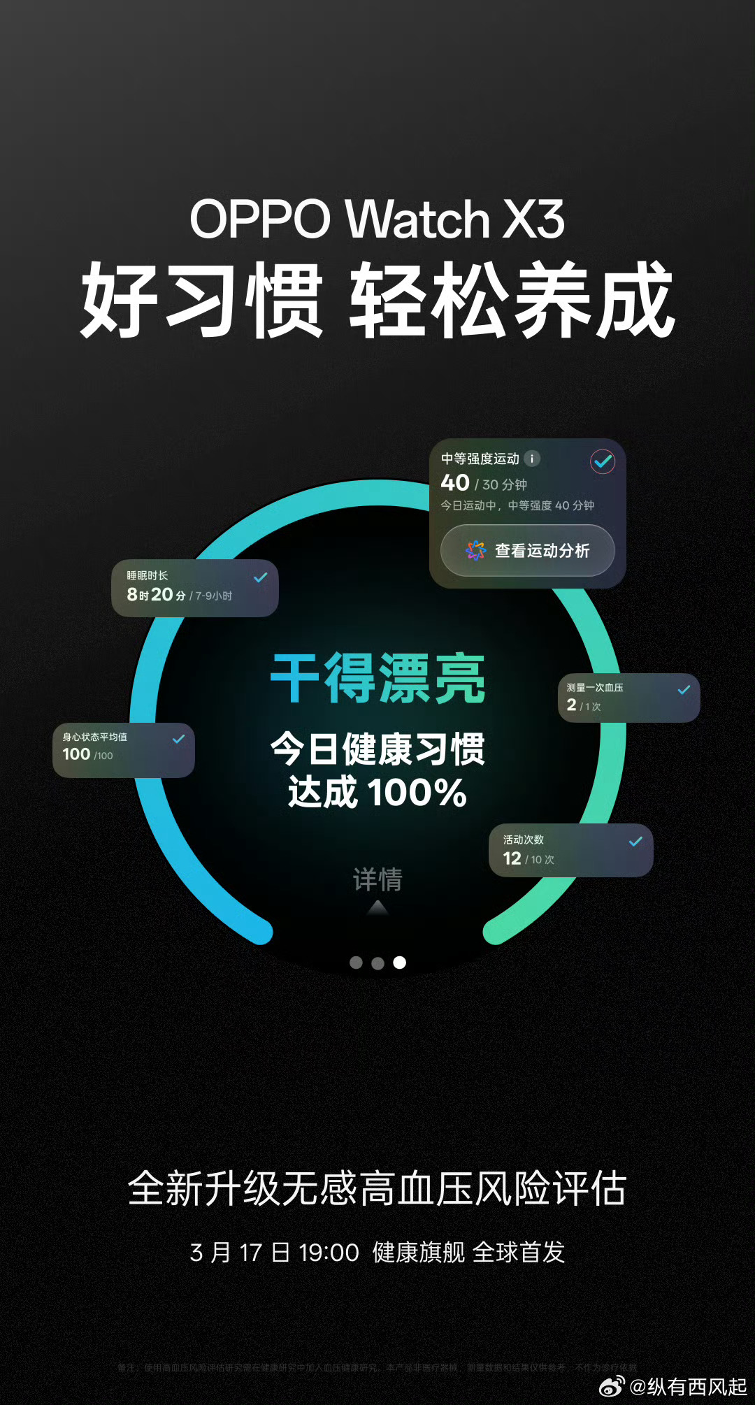 我国高血压患者近3亿人,OPPO Watch X3 全新升级的无感高血压风险评估