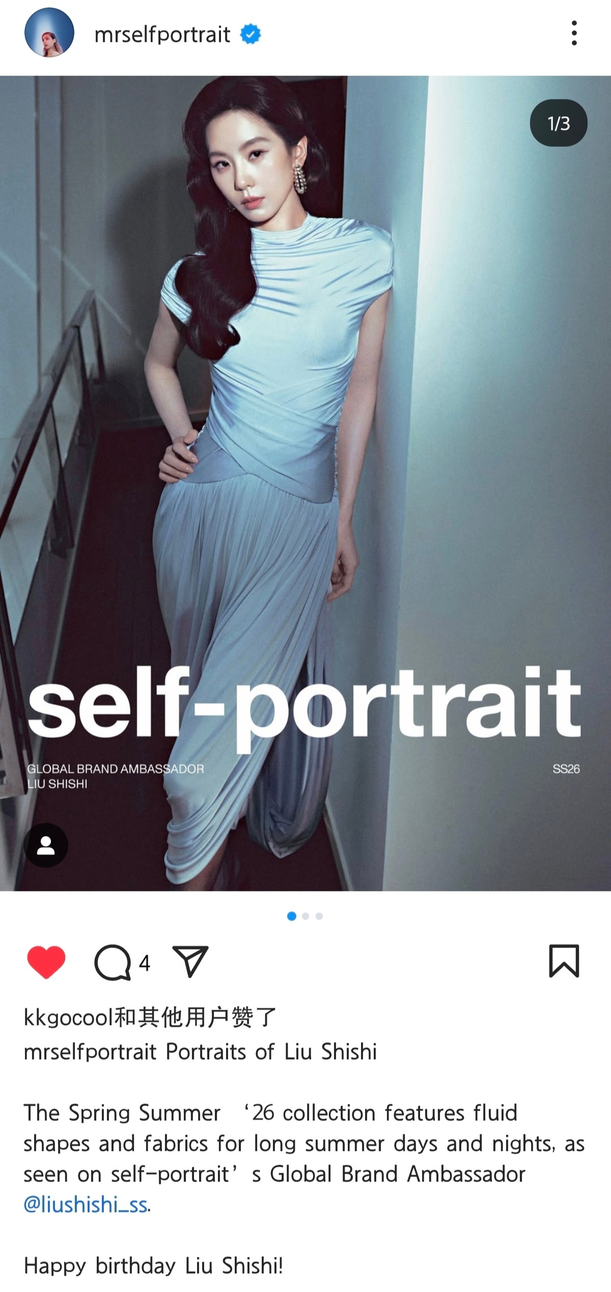 Qeelin和self-portrait在外网也给全球品牌代言人刘诗诗送上生日祝福啦