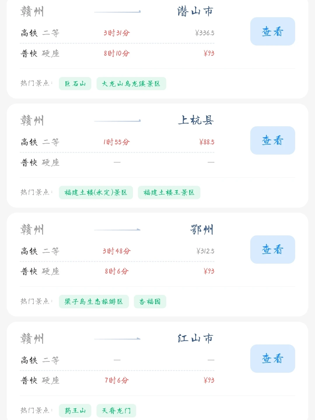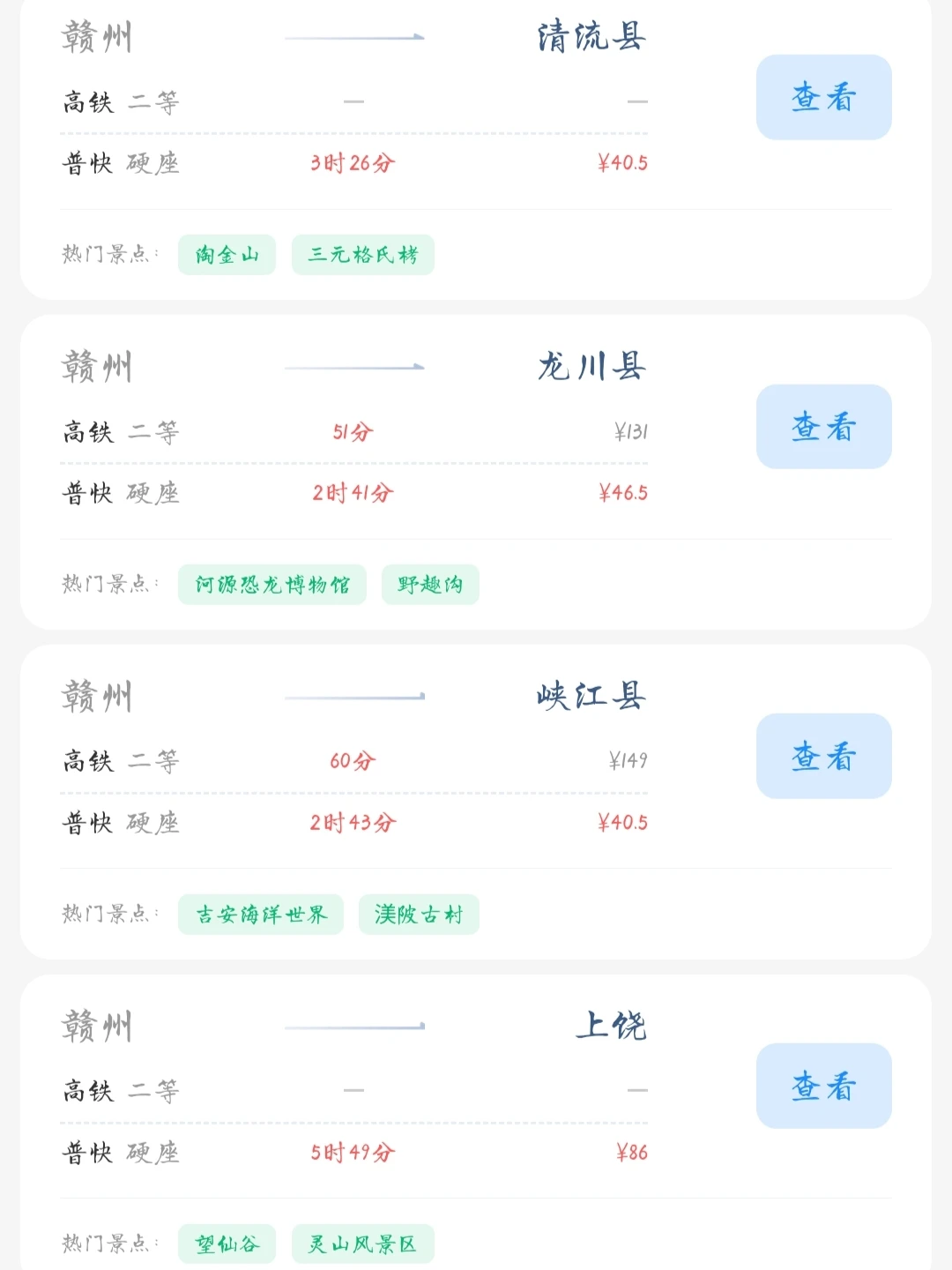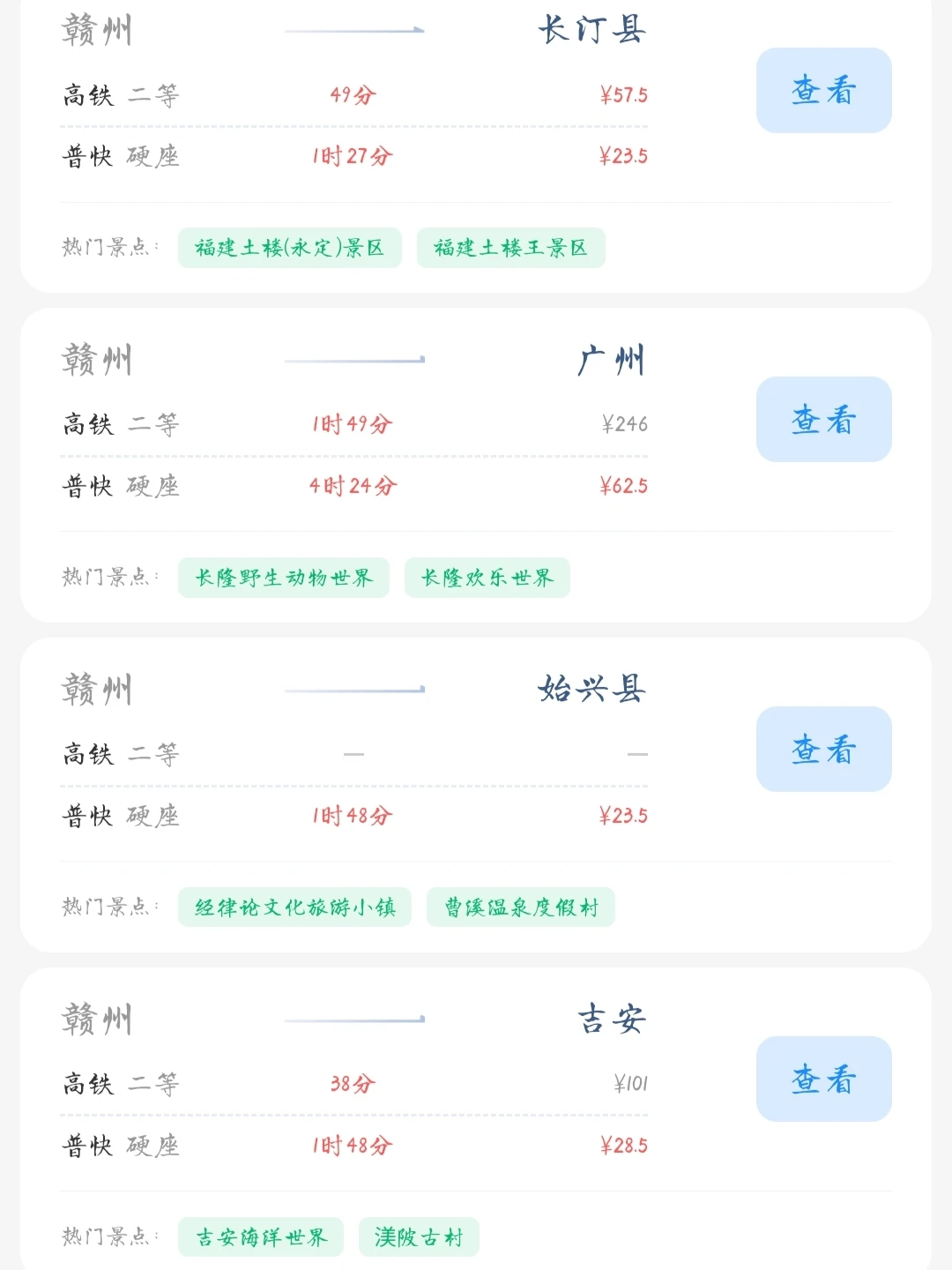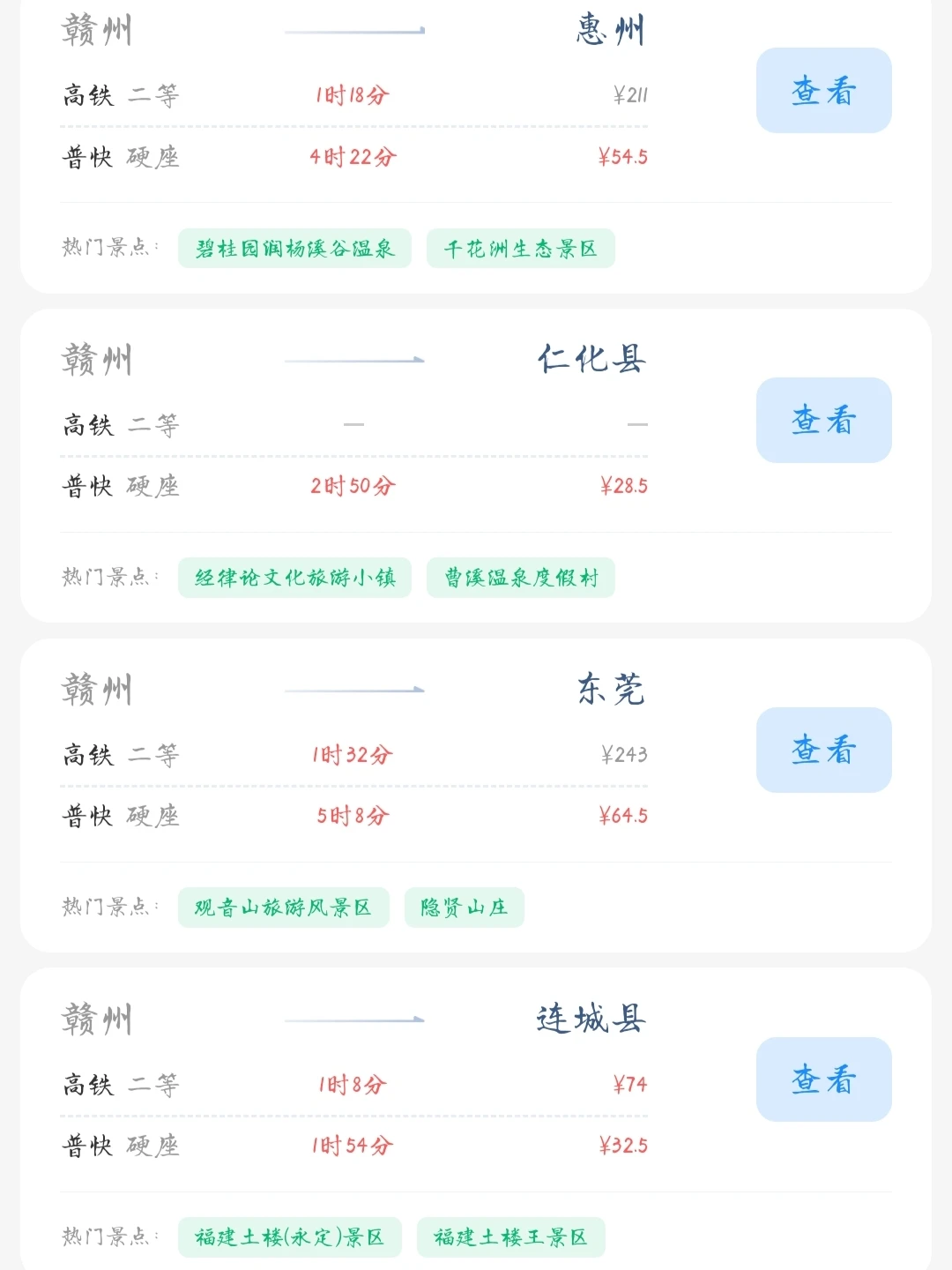 赣州的老乡们看过来! 帮大家整理好了赣州出发100块的火车票就能去的旅游城市 赣州的打工人和学生党可以看看里面有没有自己想去的城市 可以挑个周末或者节假日出去玩呀[色色R]