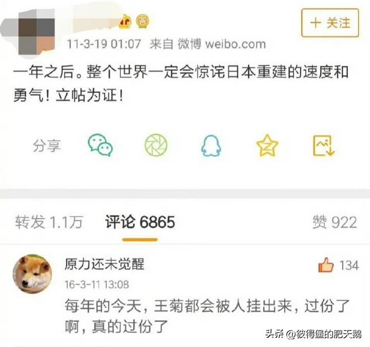 咦? ​​​这还是那个大放厥词“一年之后,整个世界一定会惊诧日本重建的速度和勇气!立帖为证”的王菊安吗? 十多年过去了,大地震过后的日本福岛不仅没有重建,还把核废水排海,能登地震一年多了,灾民还住在避难所,甚至连掉到大坑里的出租车司机应该都一岁多了,但大坑至今没填上。 王菊安发这么一长段话怕是想回中国了,但它自己选择的路再也回不了头了,至于曾经的那个家也回不去了,毕竟是它自己选的路,能怪谁呢?
