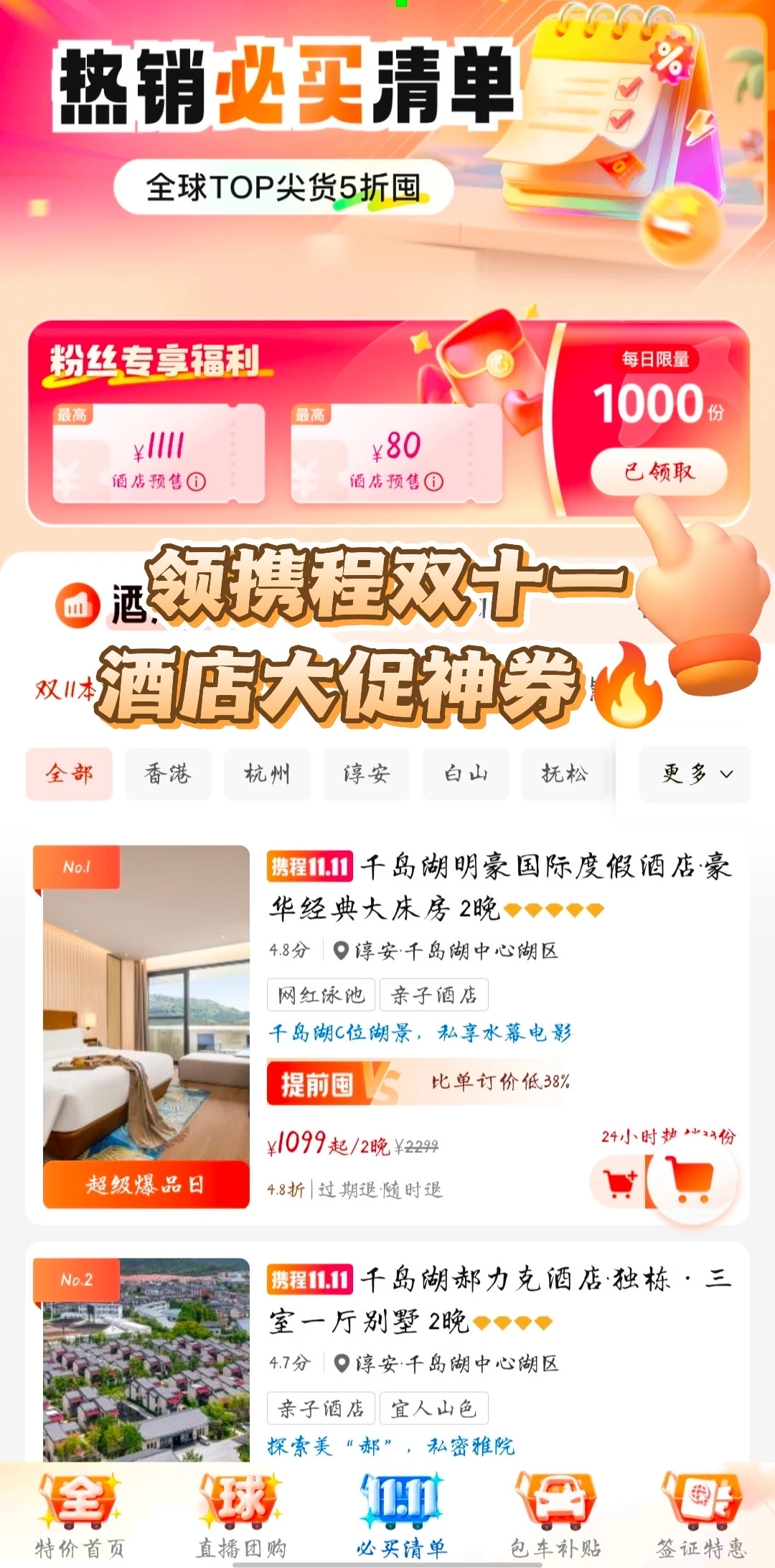 而且还有携程双十一酒店大促活动