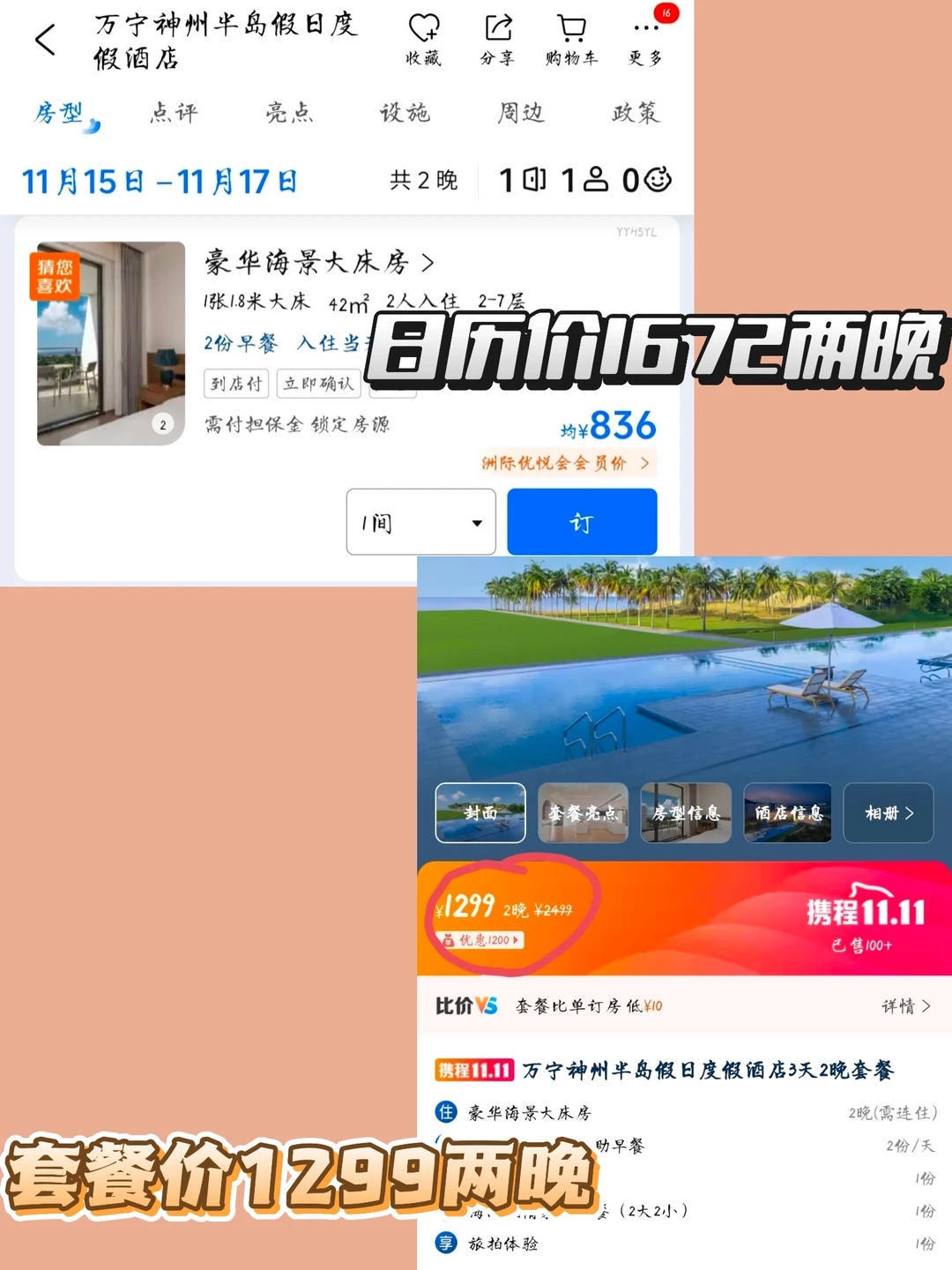 套餐价:1299/2晚