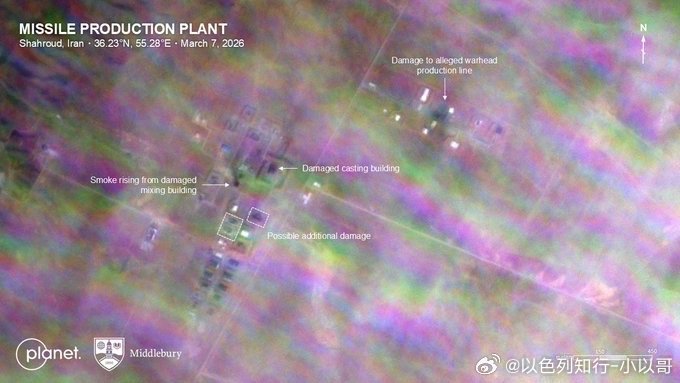 持续炸伊朗嘴炮看多了也挺腻的吧!来看看以色列的行动成果。卫星图像确认伊朗Shahroud固体燃料导弹工厂严重受损。弹头生产线、固体发动机生产线中的几乎每栋建筑都受到了损坏,许多被摧毁。海外新鲜事伊朗驻华大使称美以必须离开 这是不是比谣言和嘴炮厉害多了。