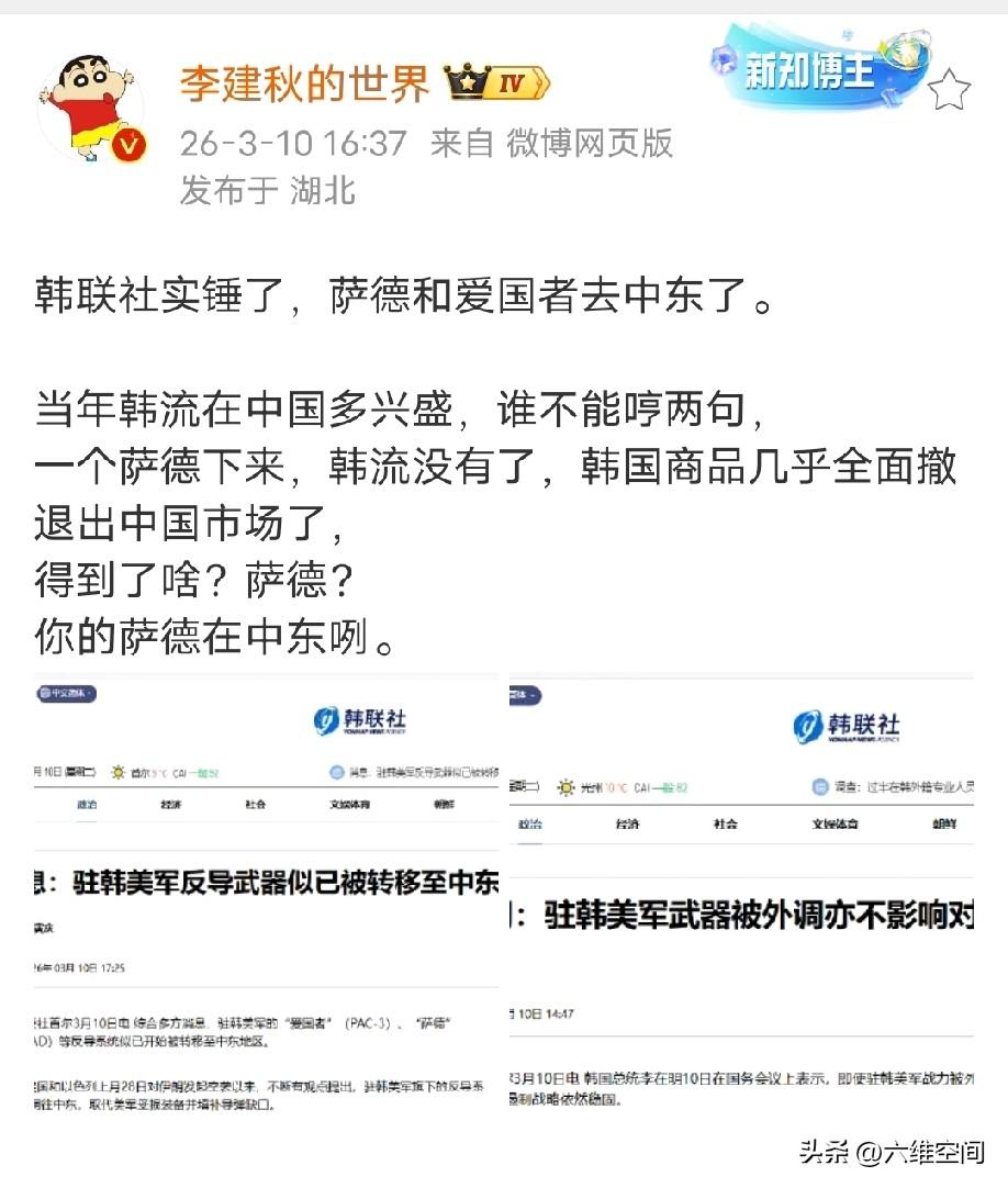 伊朗打美国的萨德系统,把韩国打成小丑了,韩国自己证实当年韩国花巨资并付出巨大代价换来的萨德系统,已经被美国搬到中东了,李在明承认反对美国这样做但是阻止不了,所以你说伊朗是不是把韩国打成小丑了! 其实为什么美国一定要把这些防空武器搬到中东,其实就是因为以色列,伊朗把美国在中东的萨德系统都打掉了,这些防空系统,实际上是以色列在用的,为什么以色列之前拦截伊朗导弹的拦截率那么高,因为伊朗的导弹刚一发射,就被这些部署在海湾国家的萨德系统捕捉到了,而且数据实时共享给以色列,以色列本土的防空系统就有充足的反应时间,所以拦截率很高,这两天美国这些防空系统被打掉后,伊朗打以色列的导弹成功率高很多了,就是因为没有美国萨德系统提前预警了,所以以色列肯定要求美国赶紧把亚洲的这些防空系统搬到中东,在美国心里,以色列肯定比韩国日本这些更重要!