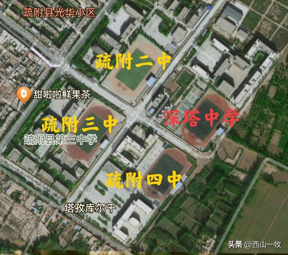 在喀什西南郊的疏附县,有这样一个奇观:疏附二中、三中、四中以及深塔中学,四所中学的校区方方正正地摆在一起,大小和配置几乎完全一样,四个大操场非常醒目。这其中的深塔中学可不一般,它是由深圳援建,专供塔什库尔干县的学生学习的一所完全中学,是寄宿制的。 为什么塔什库尔干县要把学生送到260公里外的疏附县来上中学呢?这就不得不说一下塔县特殊的地理位置和环境。看过《冰山上的来客》的人都知道,塔什库尔干是著名的雪域高原,海拔在4000米以上,环境恶劣,是不适合中学学习的。所以2017年以前,塔县的孩子们都是要到更远的喀什去读中学的,相当于挂靠借读。直到2017年深圳为塔什库尔干援建了深塔中学,考虑到海拔问题,选址放在了低海拔的疏附县,跟疏附的二中、三中、四中放在一起,教育氛围很浓厚。虽然离家远了点儿,但塔县终于有自己的中学了。