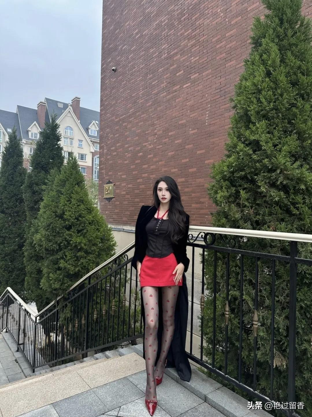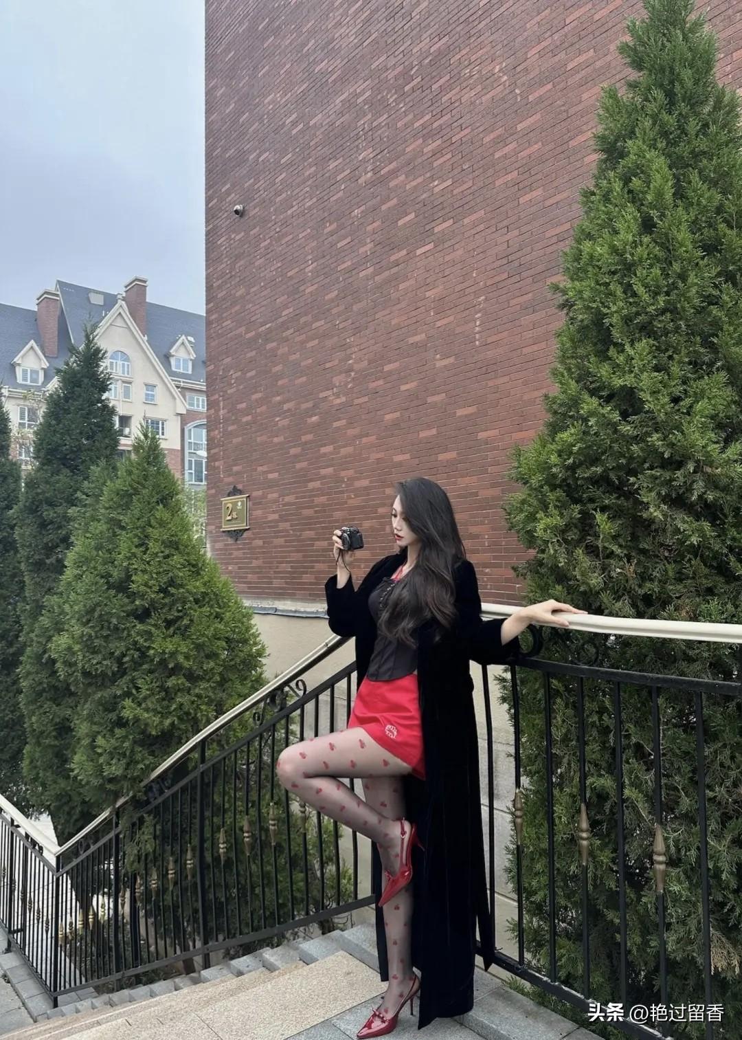 红裙黑发,优雅坐台阶,复古红鞋,惊艳一瞥!如何展现女孩独特的时尚魅力?