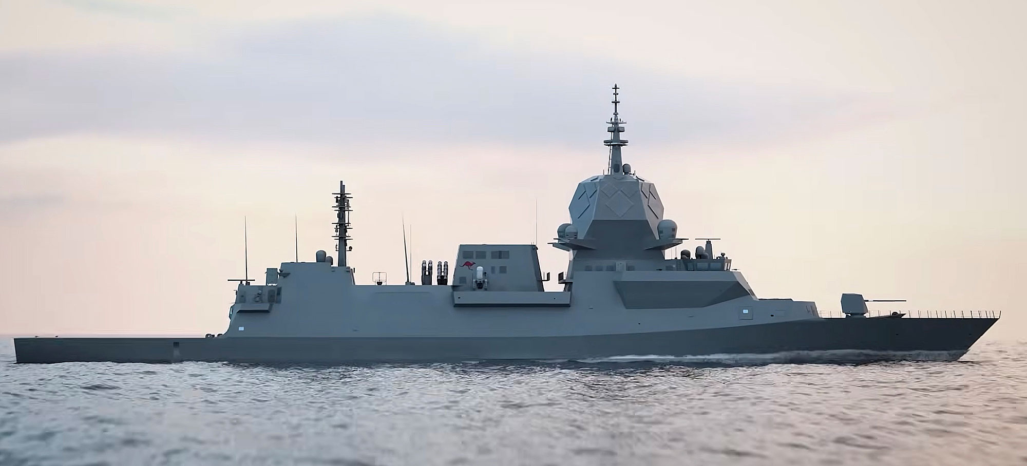 澳大利亚猎人级护卫舰的最新渲染图。6个L波段阵列、12个S波段和6个X波段照明器。什么神金布置中外舰闻