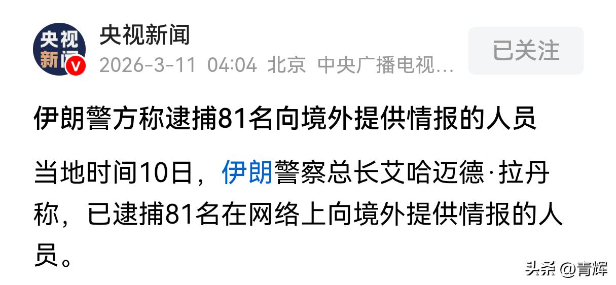 伊朗抓出81名内鬼,此前嫌疑最大的高官是被冤枉的 当地时间3月10号,伊朗警察总长艾哈迈德拉丹声称,伊朗目前已经逮捕了81名在网络上向境外提供情报的人员。这些伊朗的内鬼通过长期的运作,已经向包括以色列情报组织在内的外部机构提供了很多核心信息,在多年的对抗过程中,给伊朗带来了重大的损失和打击。 不过,在此之前有一个伊朗高官一直被认为是嫌疑最大的伊朗内鬼,此人就是伊斯兰革命卫队圣城旅司令卡尼。这个人之所以被怀疑,一方面是由于二月二十八号最高领袖被袭击的时候,这个人先是出现在了现场,随后又离去,紧接着就发生了袭击事件。另外一方面是从2024年一直到现在为止,此人至少安然无恙地躲过了三次致命袭击,然而每一次的攻击行动中他身边的同僚和其他军官却无一幸免。所以在哈梅内伊身亡之后的调查中,这个人才逐渐进入人们的视线。 再加上一些以色列媒体刻意的炒作“庆祝”卡尼是安全的,所以更加进一步的加重了此人的嫌疑。 然而从目前伊朗的调查情况来看,卡尼并不是高层内鬼,伊朗认为如果卡尼真的是摩萨德的人的话,以色列不可能会如此高调的进行宣传,还有外界说卡尼已经被杀,目前伊朗一直对外持否认态度。 其实这种谍战戏码向来如此,你中有我,我中有你,一些消息也是真真假假虚虚实实,有的时候需要等到最后一刻,才知道谁才是内鬼。