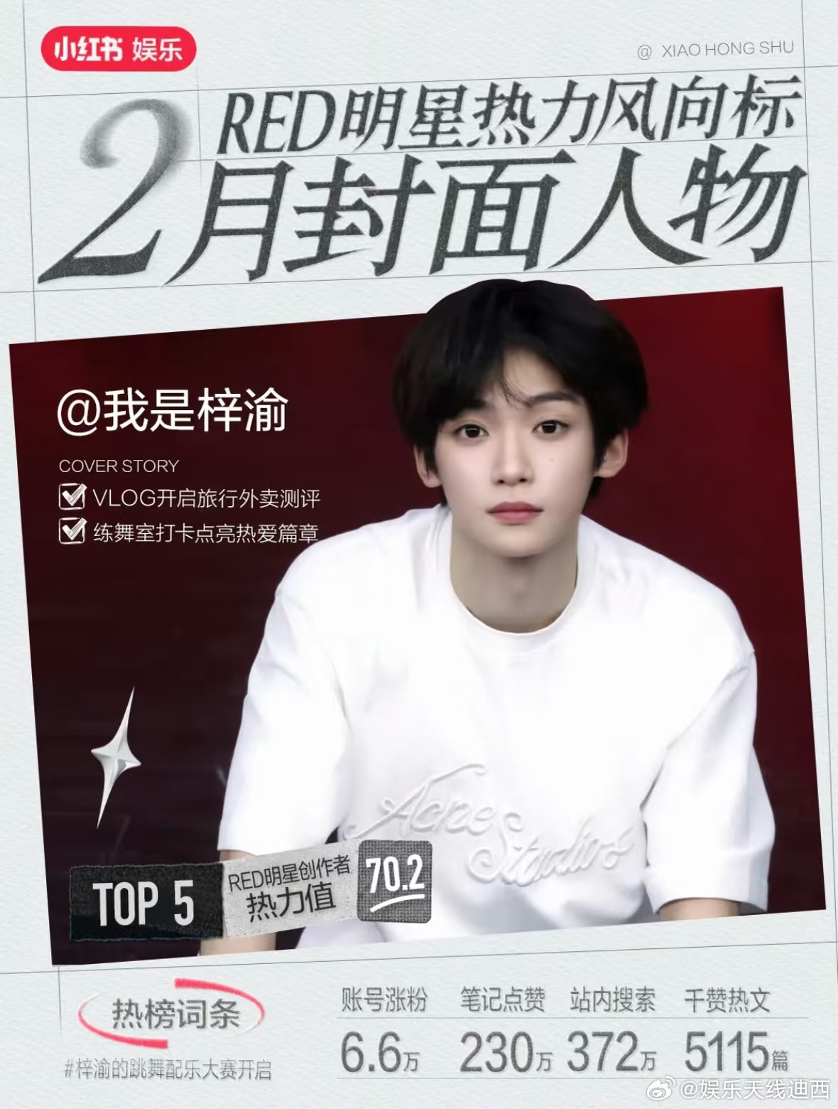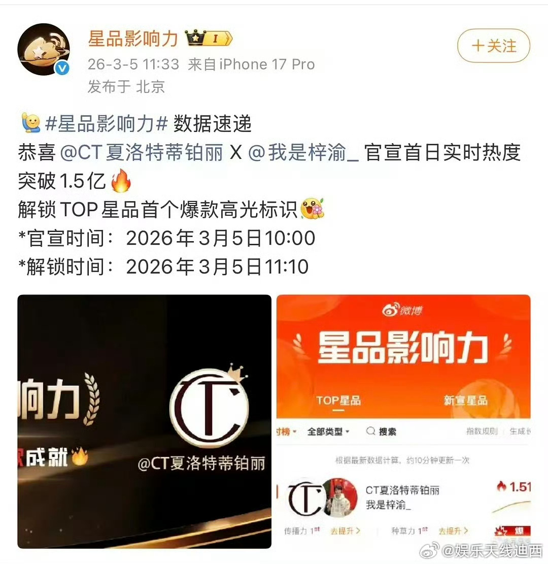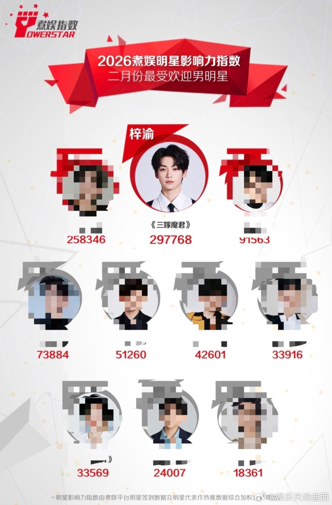 梓渝 ct大中华区底妆代言人梓渝 🏆二月全平台各项榜单陆续出炉,梓渝各项数据继续领跑中,【内娱新贵】【独爆顶流】梓渝人气实至名归!✅煮娱2026年2月最受欢迎男明星TOP1,并且连续六个月蝉联最受欢迎男明星TOP1,2025年9月-2026年2月连续六个月断层第一 ;✅ 2026年2月男演员百度指数断层第一;✅ ct官宣即刻拿下星品影响力历史第一爆;✅ 🍠2月封面人物依旧在榜名列前茅,上浮市场根据地一直是梓渝热度大本营