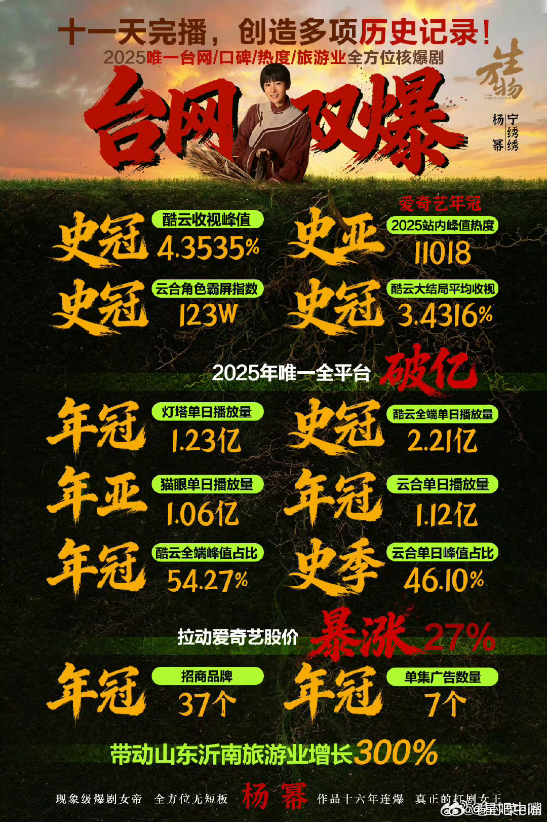 生万物火上两会杨幂《生万物》从2025年火到了2026年,超长长尾效应!《生万物》都在今年三大奖的评奖期哦!看好《生万物》横扫!