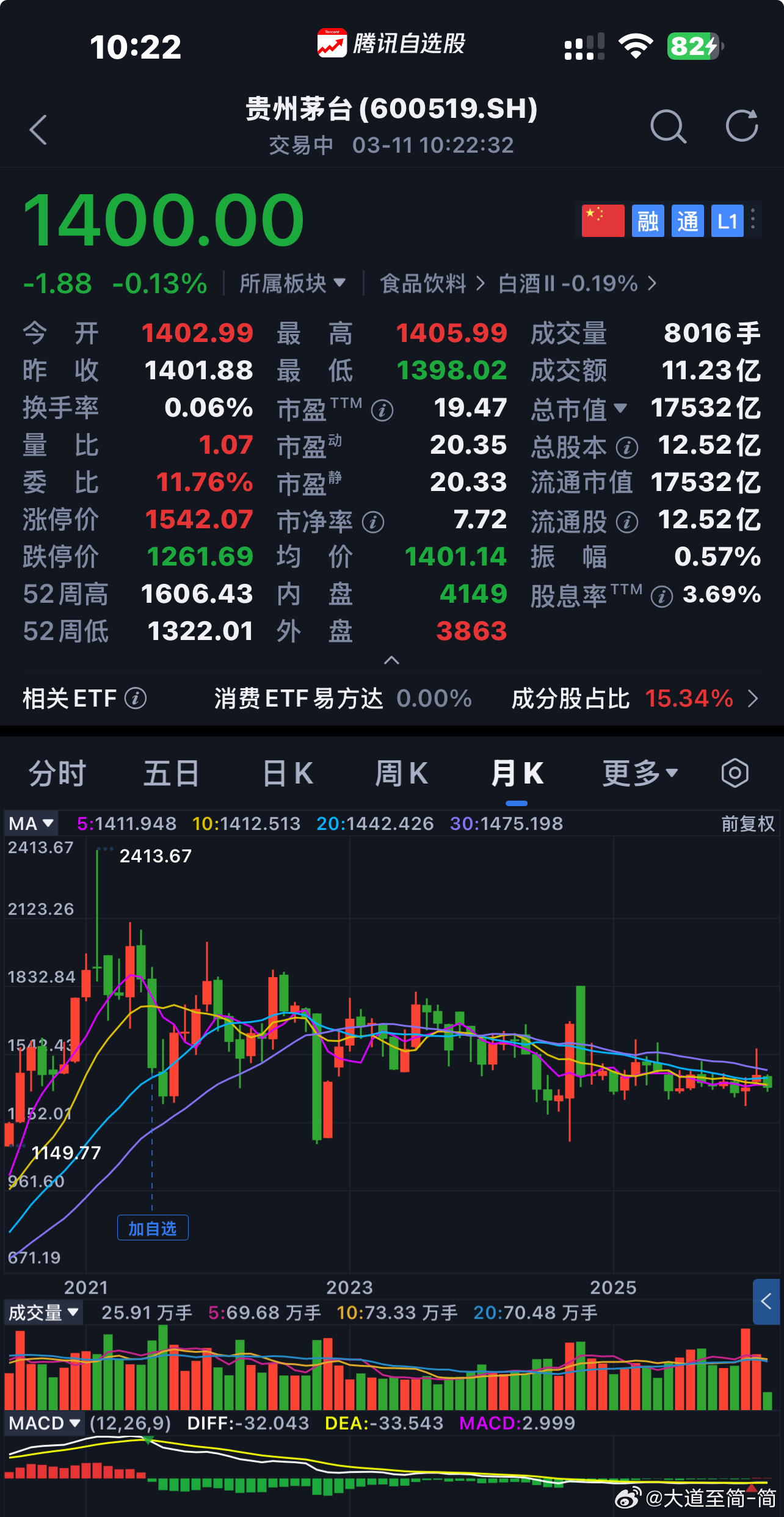 $贵州茅台 sh600519$