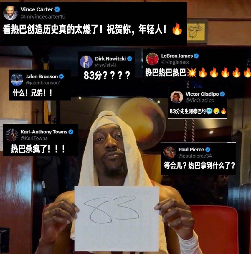 在今天进行的一场NBA常规赛中,热火队核心巴姆·阿德巴约上演了史诗级的得分表演,他全场狂砍83分,不仅刷新了个人职业生涯得分纪录,更打破了由科比·布莱恩特保持的81分单场得分纪录,创造了新的现代篮球单场得分神话。 阿德巴约此役手感热得发烫,无论是内线强打还是外线投射几乎弹无虚发,让对手的防线形同虚设。最终技术统计定格在83分,这一数字正式超越科比在2006年对阵多伦多猛龙时砍下的81分,成为NBA历史上仅次于张伯伦100分的单场第二高得分。对于全能著称的阿德巴约而言,这样的得分爆发力无疑颠覆了外界对他的认知。 当今NBA联盟节奏加快,小球时代让高得分成为常态,一度单赛季就出现过四次得分70+的情况。但对抗强度依然不减,想要在四节比赛中保持如此恐怖的得分效率几乎不可能。阿德巴约作为以内线为核心的全能中锋,并非传统纯得分手,却能在高强度对抗中持续输出,展现出极强的得分韧性与比赛统治力。 这一役,83分不仅是数字,更是对NBA传奇纪录的致敬与突破,也让世界见证现役球员冲击历史巅峰的无限可能。 不过这次的纪录在含金量上存在一些争议,此前科比创造纪录之夜是帮助球队逆转获胜,而阿德巴约创纪录的这场比赛,热火早早取得领先,在最后一节,热火球员多次故意对奇才球员犯规制造额外进攻机会,还出现热火球员故意罚球不中,试图让阿德巴约抢板完成二次进攻,几乎倾尽全队之力帮助阿德巴约创造纪录。这让这场比赛在最后几分钟失去了正常比赛的节奏。不过不论过程如何,历史依然会记住这个83分。