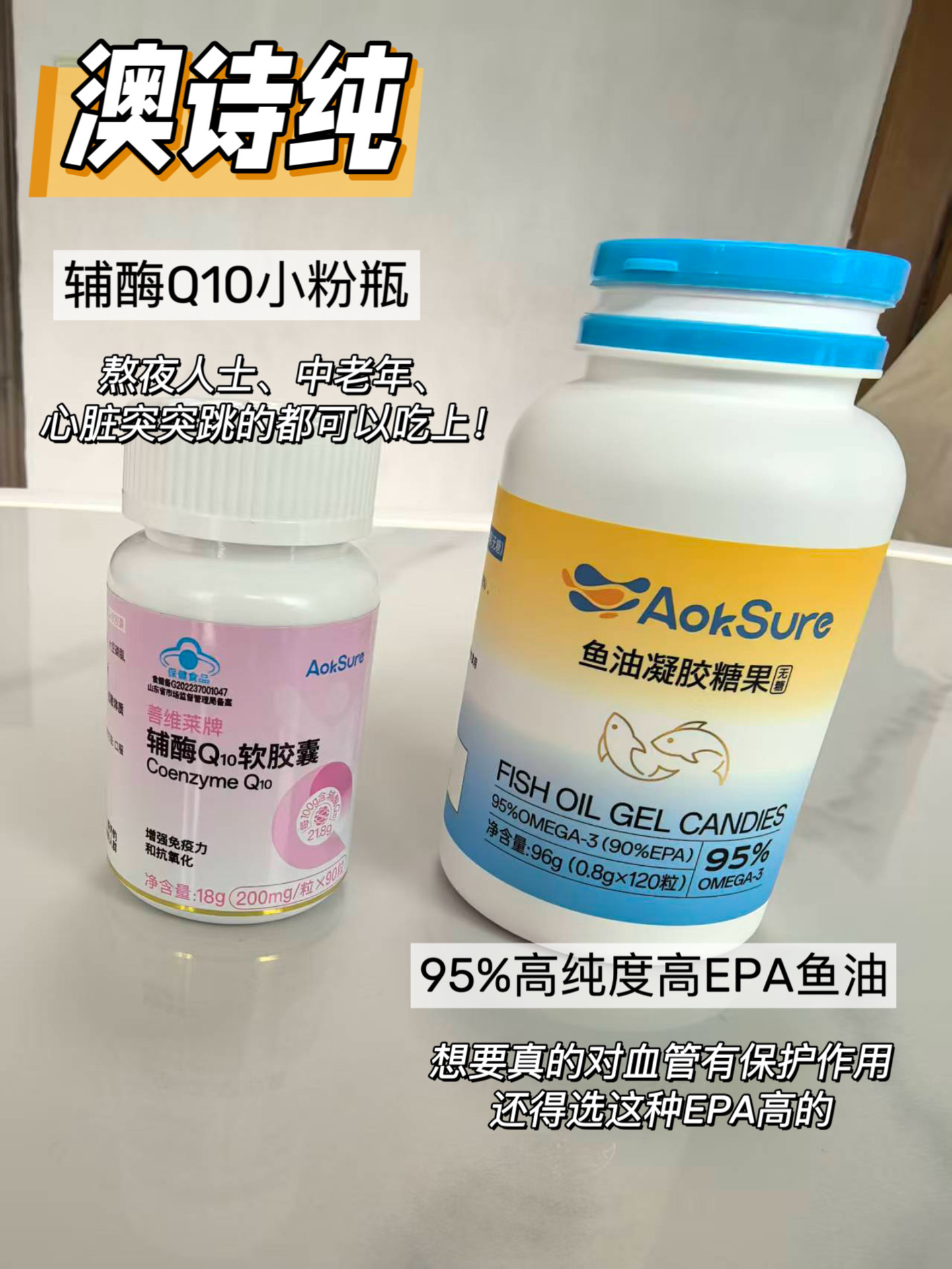 高EPA鱼油负责控制身体炎症和清理血管;辅酶Q10可以为心肌提供充足能量,以及抗氧化,两者一起吃足以应付平时的保养需求。