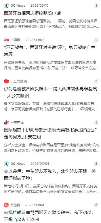 美伊冲突还没平息,欧洲内部就先乱了,德国总理默茨两次主动致电西班牙首相桑切斯,结果都被拒绝,这一操作说白了就是美伊冲突闹的,欧洲这帮盟友在对伊朗的态度上已经吵得面红耳赤。 麻烦看官老爷们右上角点击一下“关注”,既方便您进行讨论和分享,又能给您带来不一样的参与感,感谢您的支持! 这一阵子,全世界的目光都盯着美伊冲突会不会再升级,没想到战火还没烧起来,欧洲自个儿的后院先乱了。德国总理默茨最近挺尴尬,他两次拿起电话想打给西班牙首相桑切斯,结果对方愣是没接。这事儿听着像小孩闹别扭,但背后捅破的,可是欧洲在美国和伊朗之间那道深得见不到底的裂痕 。 事情的起因,得从那场白宫会谈说起。3月初,默茨屁颠屁颠跑到华盛顿见特朗普,本来想谈谈生意经,结果特朗普哪壶不开提哪壶,当着记者的面直接把枪口对准了西班牙,大骂西班牙在打击伊朗的事情上“不够意思”,不仅不配合施压,还拒绝开放境内的美军基地,甚至威胁要切断和西班牙的所有贸易往来 。这时候镜头给到默茨,这位德国总理就跟没事人似的,坐在旁边一声不吭,连句帮腔的话都没替西班牙说 。 这下可捅了马蜂窝了。默茨前脚刚离开美国,后脚就赶紧找补,说自己其实私下跟特朗普求了情,只是不想在公开场合火上浇油 。但马德里那边根本不买账,心想你这就是典型的“事后诸葛亮”。西班牙外交大臣气得直跳脚,说要是换了默克尔或者朔尔茨,绝对不会看着自家兄弟被外人指着鼻子骂还装哑巴 。为了挽回点面子,也为了修补欧盟这点脆弱的团结,默茨回到柏林后硬着头皮给桑切斯打了两次电话。结果呢?听筒里传来的只有忙音——被拒接了。西班牙政府的回应也挺有意思,发言人出来打圆场说“哎呀误会了,是因为首相总换号码,默茨打的是旧号”,但明眼人都看得出来,这就是在用沉默抽德国的脸,表达对那种“背弃盟友去舔美国”行为的不满 。 西班牙这次之所以这么刚,不惜跟美国老大翻脸,甚至跟德国老伙计闹掰,那是因为心里有道二十多年都好不了的疤。2004年3月11号,马德里的几列通勤火车连环爆炸,193条人命没了,两千多人受伤,那是西班牙版的“911” 。谁干的?跟“基地”组织有关联的极端分子。为啥干?就因为当年的西班牙政府跟着美国屁股后面去打伊拉克战争。那场所谓的“正义之战”,最后被证明不过是用一管“洗衣粉”编造的谎言,西班牙用自己国民的血买了单 。 所以现在桑切斯的态度特别坚决:绝不能再当帮凶。他公开站出来说,那些单边军事行动是“以非法回应非法”,西班牙绝不会因为怕报复,就去参与这种祸害世界的事儿 。这话说得已经够重了。除了历史血的教训,还有现实的生存考量。西班牙南部那俩美军基地,罗塔和莫龙,那是美军的南欧门户。一旦美伊真开打,这地方就是伊朗火箭弹的头号目标,西班牙人可不想替美国人挡子弹 。再说了,霍尔木兹海峡要是被封锁,地处地中海要冲的西班牙,能源供应和难民潮的冲击立马就得扛上肩。为了美国的战略,搭上自个儿的身家性命,这笔账西班牙算得清。 默茨那边其实也挺冤,他夹在中间两头不是人。你说他亲美吧,他也知道欧洲得自主,私下也跟特朗普争辩过不能制裁西班牙 。但在那个节骨眼上,德国经济本来就软,安全上又指着美国的保护伞,他哪敢当面跟特朗普拍桌子?这种“经济上的极端弱势”,让他只能选择忍气吞声 。可惜西班牙不体谅这个,在西班牙人眼里,甚至在整个南欧的左翼舆论看来,默茨就是那种没骨气的“附庸”代表 。 这场“电话门”撕开的,其实是整个欧洲在美伊问题上的大分裂。英国那头,斯塔默明确说了不参与进攻性打击,但查戈斯群岛的基地最后还是扭扭捏捏让美国人用了,典型的想两头讨好 。法国人倒是硬气,马克龙直接跳出来说美国那套不符合国际法,转头就把“戴高乐”号航母派到了地中海,摆出一副要自己当和事佬的派头 。至于东欧那帮国家,像捷克、波兰,历来是美国的铁粉,早就站队站得笔直 。而德国,就像现在这样,掉进了想当和事佬又不敢得罪老大的泥潭里。只有西班牙,把国家主权和老百姓的安稳日子,实实在在地摆在了所谓的“盟友情谊”之上 。 这么一闹腾,所谓的西方铁板一块,现在看来全是裂缝。特朗普那套“要么听话要么滚”的做派,正在把欧洲往不同的方向猛推。默茨那两通没打通的电话,就像一面镜子,照出了大西洋两岸关系的冰凉,也照出了欧洲人在“跟着美国混”和“自己当个人”之间的挣扎与分歧。