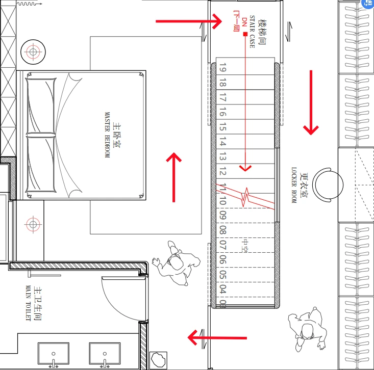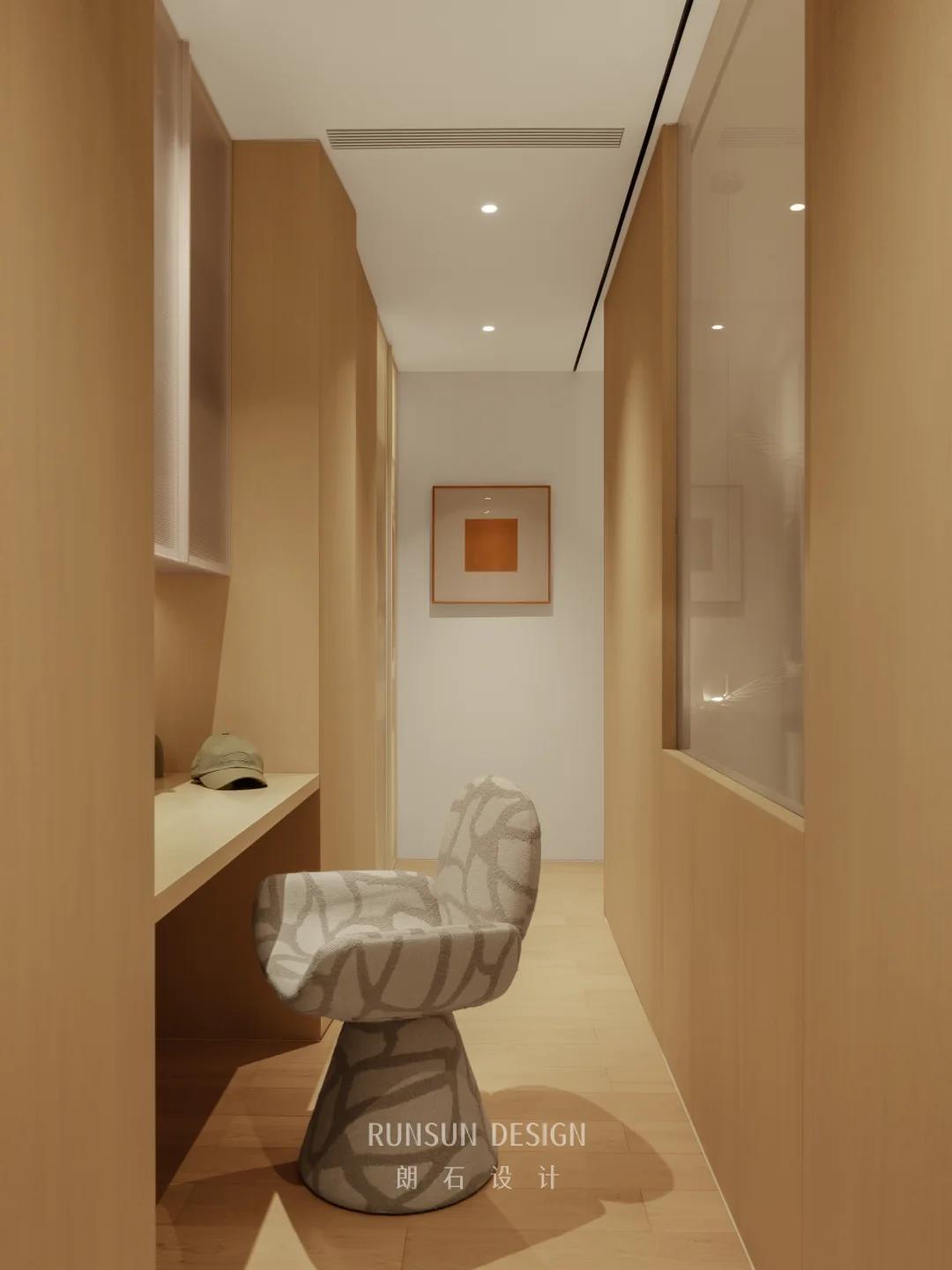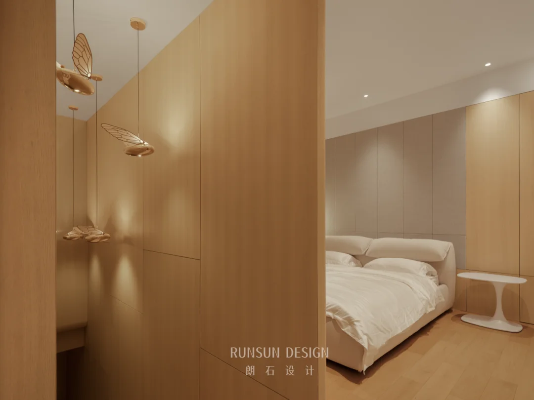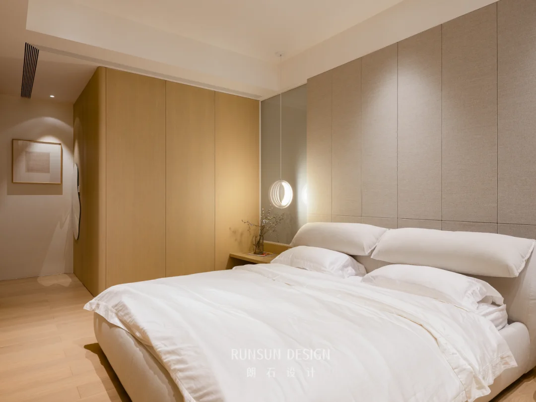 本案采用回游动线设计,通过环形路径实现主卧、更衣室的双向贯通与视觉延伸。 动线流畅无折返,功能分区清晰却不割裂,既满足日常使用的便捷性,又强化空间的层次感与流动性,提升整体舒适度与高级感。