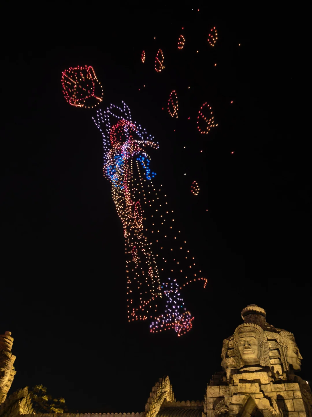 印尼传统歌舞+无人机魔球表演,几百个小球在空中拼出各种图案,美得不真实,中间前排视角最好。