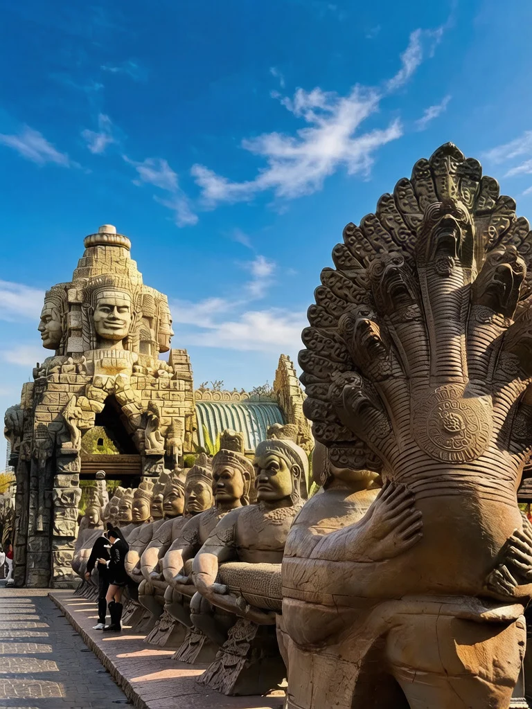 悬挂式球幕影院,双脚悬空飞越东盟十国——从吴哥窟到下龙湾,从塔銮到双子塔。我旁边的小姑娘下来后眼眶都红了,说太震撼。建议一早冲或者傍晚去,排队时间能少一半。