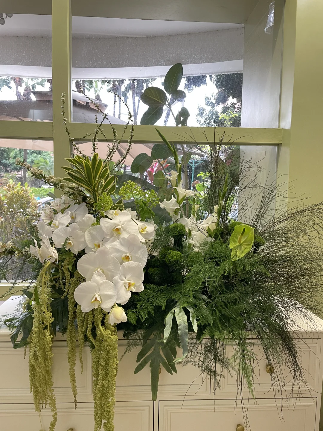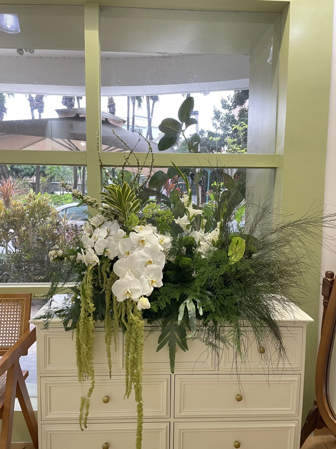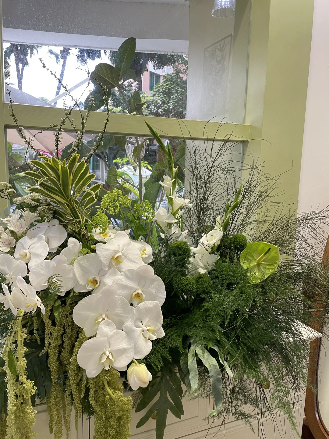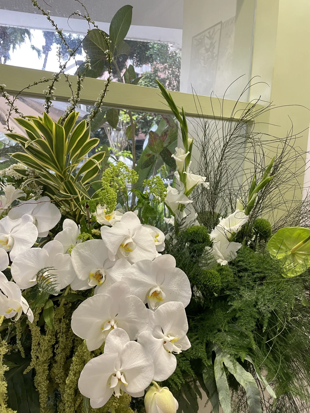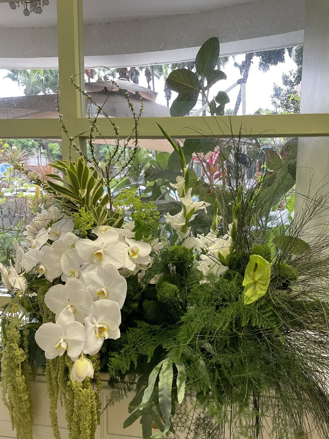顺德碧桂园花店 佛山花店 桌花 空间花艺美陈 酒店大堂桌花 餐厅桌花设计 宴会桌花 白绿色系