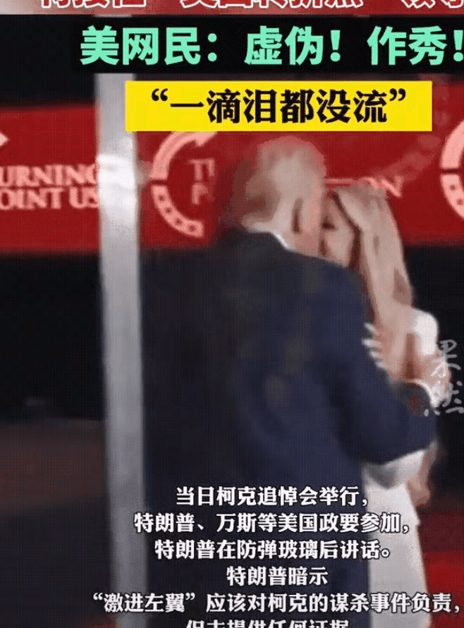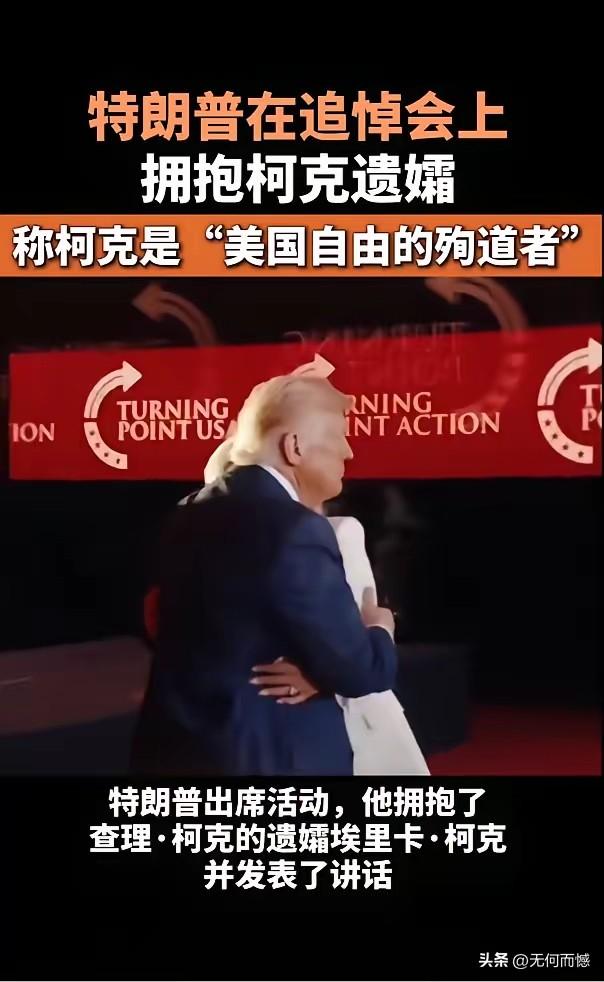 老特和查理·柯克遗孀的这张合影,应该有艺术加工的成分,现场拍摄的照片不可能拍出这样的效果,这应该是经过后期加工和处理的。现在柯克的遗霜也有了一份比较不错的工作,整个人的精神气质和精神状态也不错,因为她的确得到了很多实惠,她应该感谢老特!