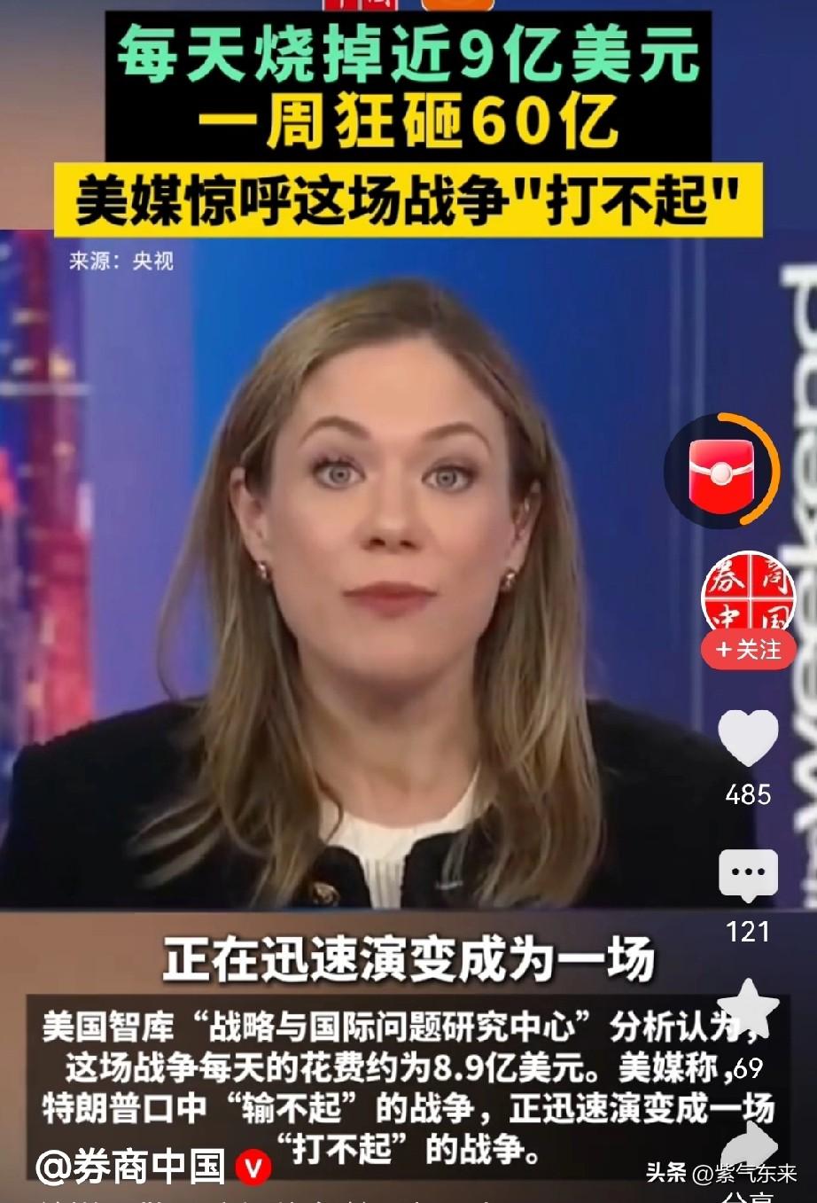 对伊朗军事行动平均每天花掉美国纳税人9亿美金 特朗普也着急,再这样下去真的“打不起”了,太烧钱! 美国五角大楼向美国国会通报称:对伊朗的军事行动第一周已经花了60亿美元,其中40亿用于购买弹药 美国媒体抨击特朗普口中的“输不起”正在迅速演变成“打不起”了! 再这样打下去,美国国会可不乐意了,虽然美国将近9000亿美元军费,那是专款专用的!至于对伊朗的战争消耗,需要向国会重新申请。 国会也不乐意了,毕竟纳税人的钱不能让特朗普就这样每天无休止的消耗下去!美国对伊朗空袭