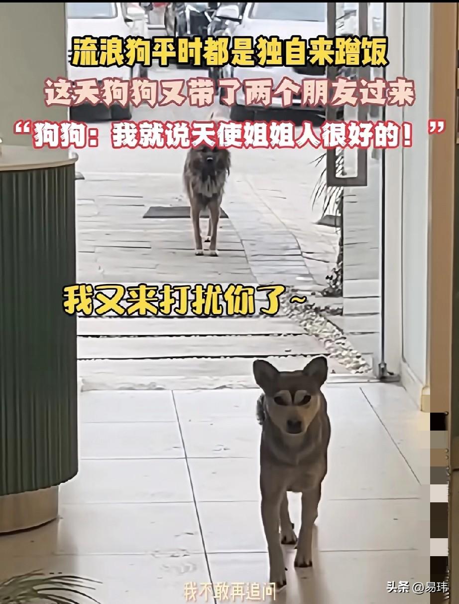 泪目了!一位小姐姐开了一家小饭店,平时她就负责收银,也还挺轻松的,不久前的一天,她看到一只狗狗跑进了她的店里,善良的她就拿出食物投喂它。狗狗开心的饱餐一顿,这之后它就经常来蹭饭,小姐姐也是每次都慷慨的给它美食一顿。 可这天下午她却看到经常来蹭饭的狗狗,居然带了两只狗狗一起来了,只见那两只狗狗则是站在门口静静地等待着,似乎是在等小姐姐同意,而经常来的狗狗则一脸期待的望着小姐姐,偶尔回头看看门外的狗狗,就好像在说它们是我朋友,能不能给它们也吃点。最终小姐姐十分大方的给它们准备了一顿大餐。