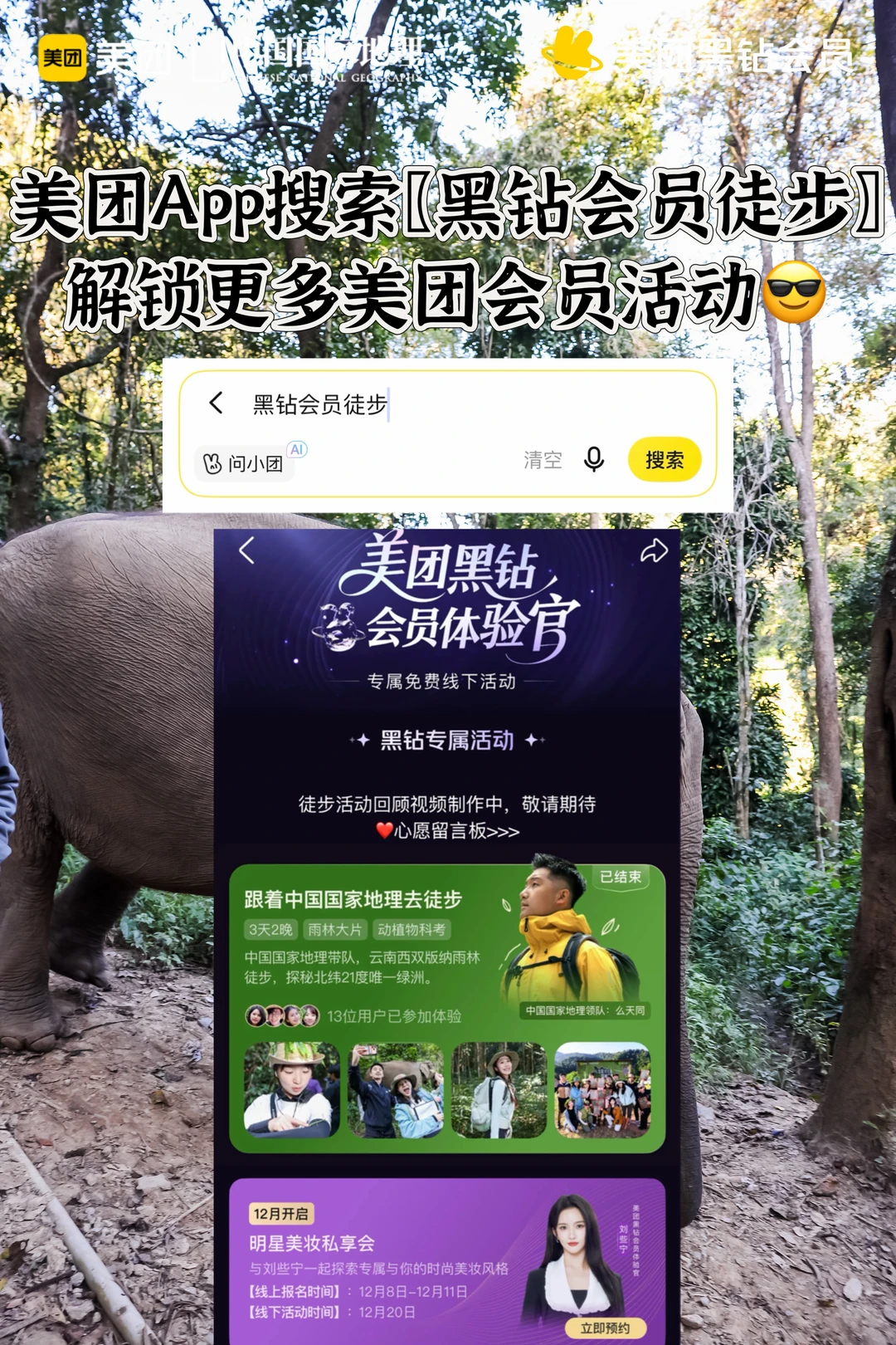 看了美团黑钻会员×中国国家地理联合举办的雨林徒步活动,才知道什么叫“深度版纳”,直接甩常规团十条街🤩