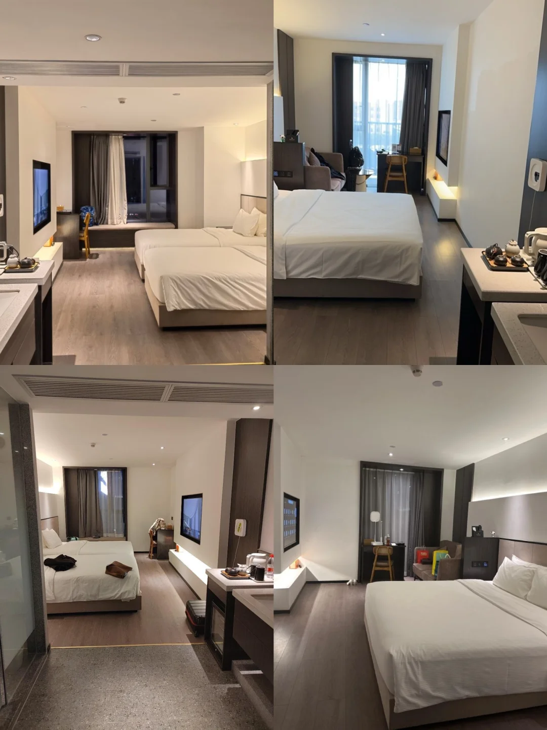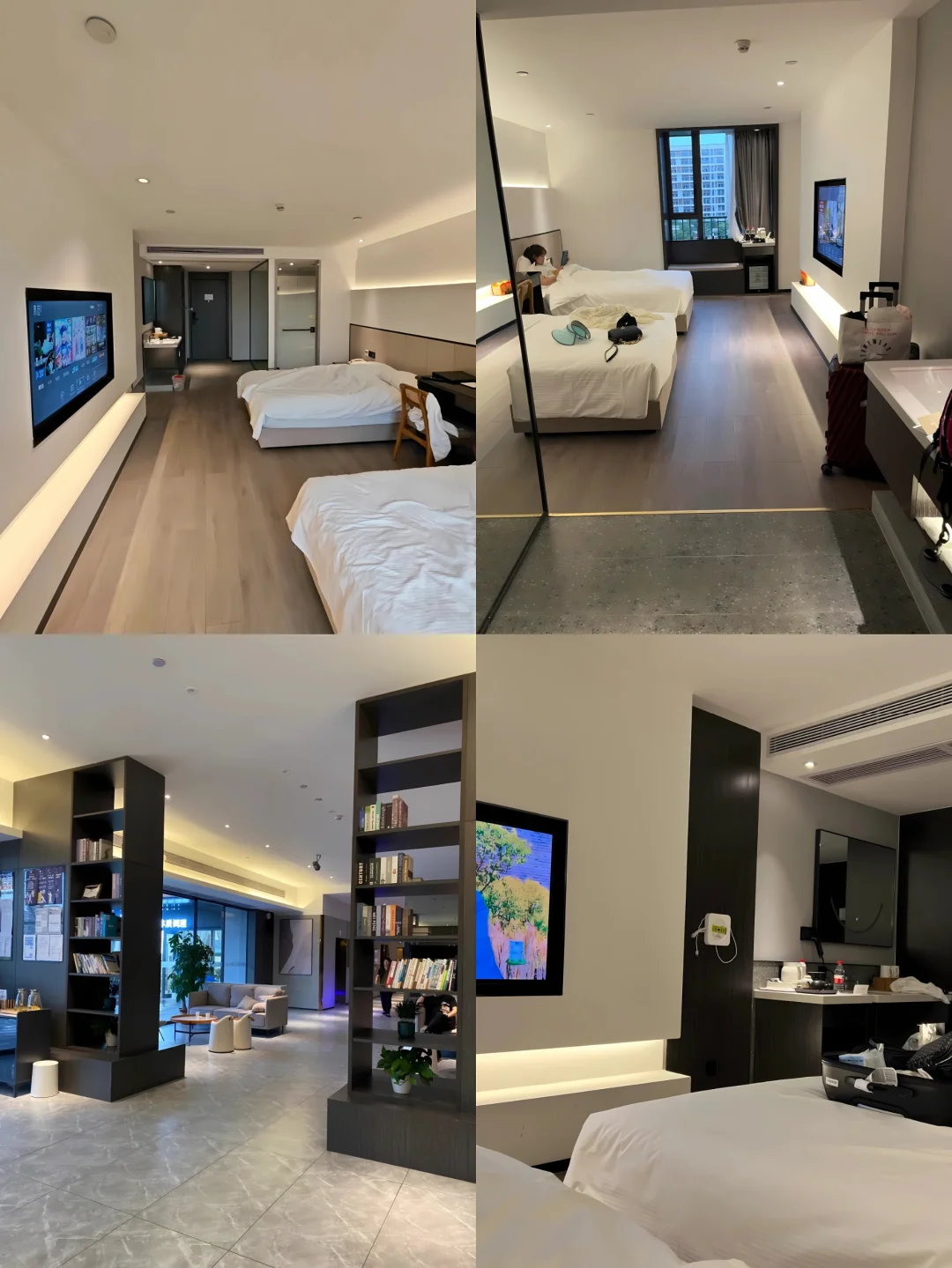 🔹房间干净整洁,宽敞明亮,平铺两个行李箱也没问题,床垫柔软舒适,一次性牙刷、牙膏等生活用品齐全,还有小冰箱可以放可乐、小吃