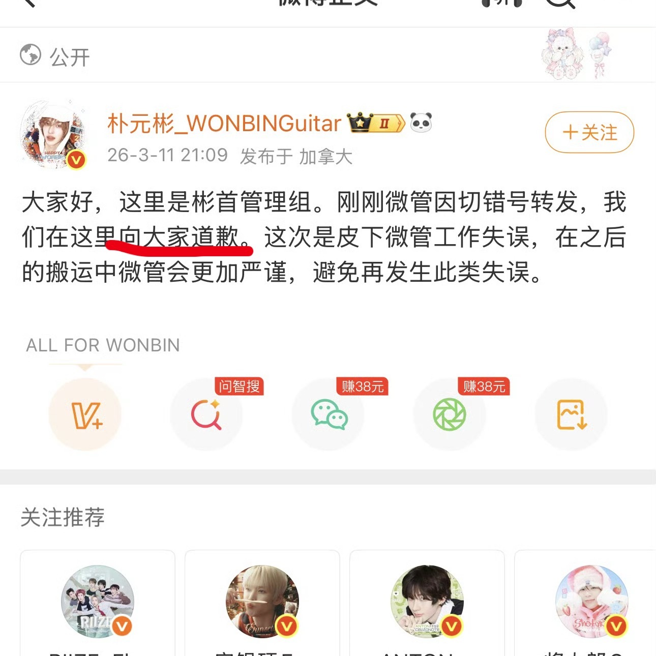 |朴元彬 |朴元彬大吧切错号 所以一句微管切错号就可以粉饰借机辱骂李炤熙,贬低品牌方辱骂杂志的锅吗?公布皮下让皮下出来给李炤熙道歉,不然以后上DAZED KOREA杂志的艺人都被随意抹黑成野杂艺人那可咋办,随手一翻ins首页,看看你们口中的“野杂艺人”到底谁上