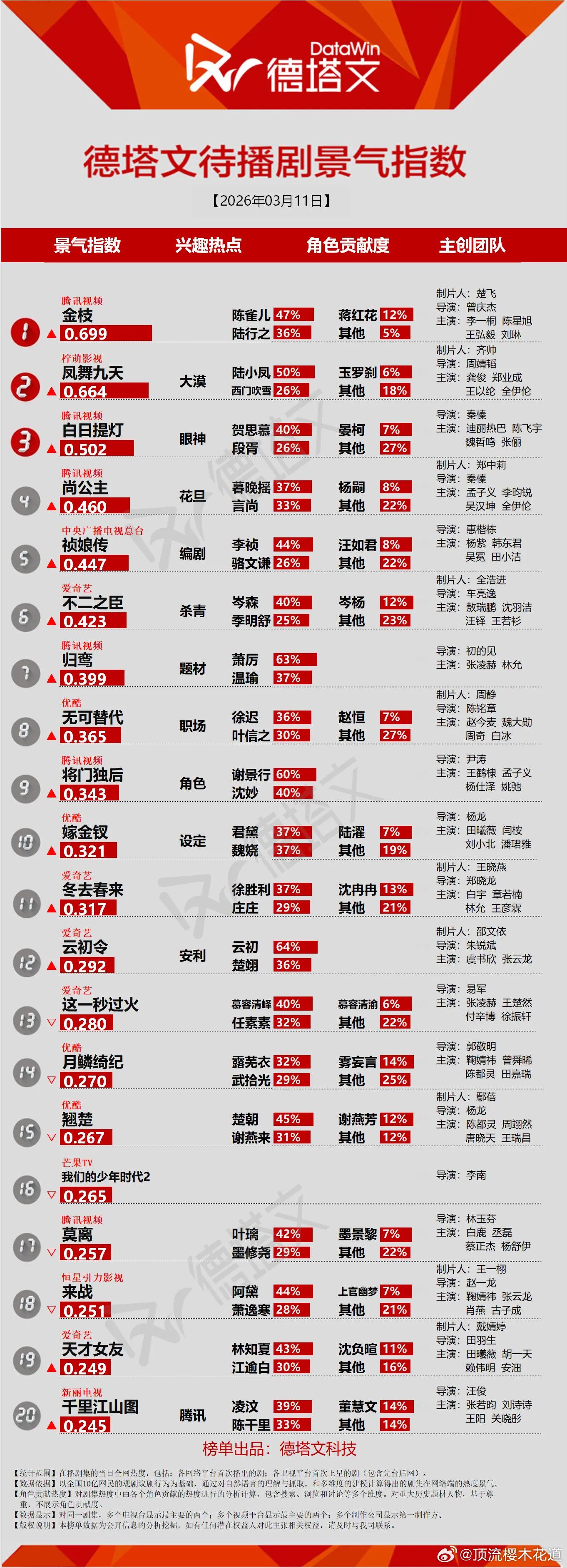 今天的德塔文景气指数逐玉2.201我的山与海2.016待播剧景气指数祯娘传0.447上榜,不容易啊,改名后各项数据都不一定关联上了。