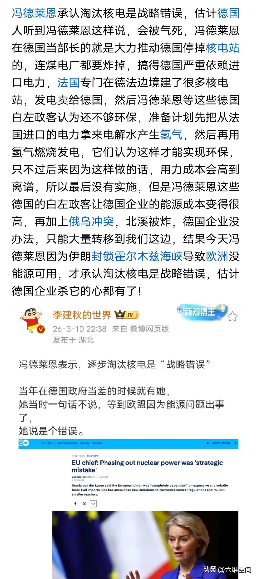 欧洲今天的各种危机都是自找的,都是冯德莱恩这些白左政客作妖作出来的结果!欧洲本身