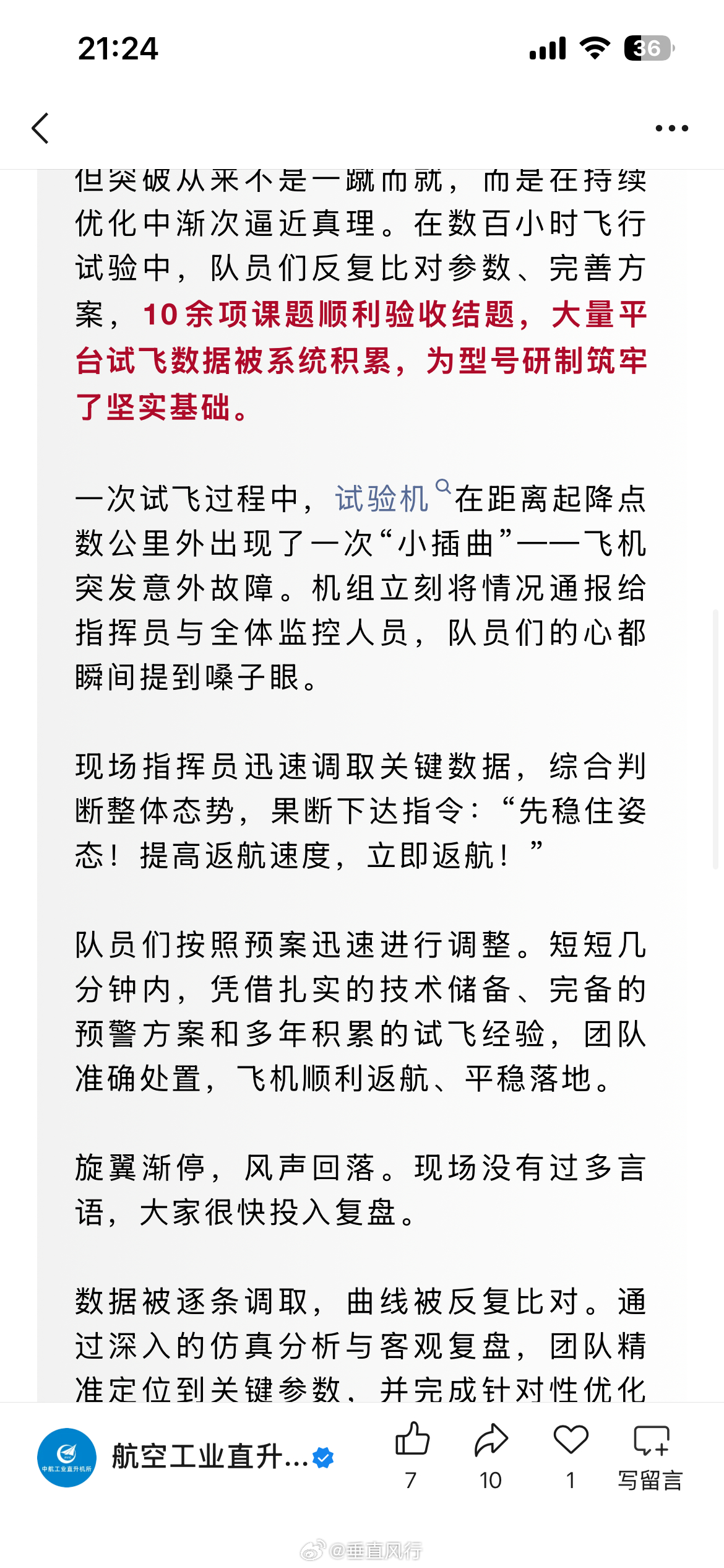 官泄某型机:航空工业直升机所今天刊登题为《逐风破界 志在凌云——直升机所新构型技术攻关罗阳青年突击队攻坚纪实》的文章,看标题是讲直升机所团队研制新构型的事情,那么是什么机型呢,官方配图滴水不漏。但是文字却能看出端倪:“一次试飞过程中,试验机在距离起降点数公里外出现了一次“小插曲”——飞机突发意外故障。……飞机顺利返航、平稳落地。旋翼渐停,风声回落。”这是第一个故事,与后边第二个故事对主角的描述有个非常明显的区别:“直升机升空后……直升机的轰鸣声再次在群山间回荡。”这里就涉及官方对于直升机的定义问题,即在直升机所的眼里,“直升机”不是“飞机”。这也从两个故事里对主角的描述可见一斑。那么回过头去看第一个故事,“飞机”,同时具有“旋翼”,那么能是什么新构型呢?航空创作计划武器装备旋翼视界