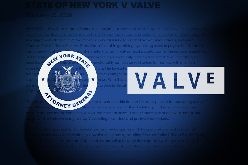 James提起的诉讼旨在“永久叫停Valve在其游戏中推广赌博功能,没收其全部非法所得,并就违反纽约州法律的行为处以罚款”。此前,Valve的战利品箱系统面临着日益增多的监管和法律挑战。