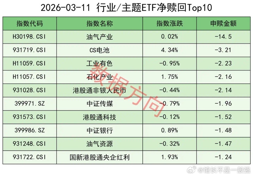 油气产业指数(-14.5亿)、工业有色指数(-2.23亿)、石化产业指数(-2.16亿)、油气资源指数(-1.47亿),一起进入赎回榜。