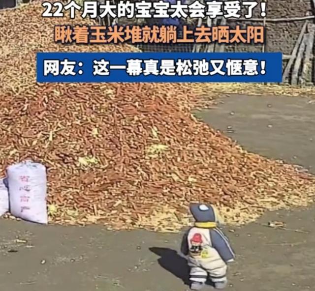 没有滤镜、没有剧本,一段22个月萌娃躺玉米堆晒太阳的监控画面,一夜之间治愈千万人。金黄玉米堆成天然软床,暖阳裹着谷物清香,小家伙眯眼躺平、四肢舒展,连呼吸都透着松弛。妈妈一句让孩子接地气,戳中无数家长的育儿焦虑,也唤醒成年人藏在心底的童年记忆。 我们为什么破防?不是萌娃有多可爱,是太久没见过不加修饰的快乐。城里孩子困在早教班、游乐场与高楼间,玩具成堆却少了摸泥土、晒暖阳的自由;成年人被KPI、房贷、内卷推着走,连发呆五分钟都成奢侈。这一幕里,没有攀比、没有焦虑,只有自然与童真,刚好击中我们最缺的松弛感。 妈妈说,孩子从小在院子里疯跑,沾点泥土、吹点风,反而体质更好、性格更开朗。比起精致育儿里的过度保护,这种接地气,是让孩子扎根生活、感知四季。网友刷屏“我也想躺”,躺的不是玉米堆,是回不去的童年,是想卸下重担的自己。 最好的成长,从不是被圈在温室里,而是在天地间撒野、在烟火里扎根。这堆玉米、这缕阳光,告诉我们:快乐很简单,幸福很朴素。你小时候有没有这样晒过太阳?现在的你,还敢这样无所顾忌地躺平吗?宝宝晾晒 宝宝睡眠照