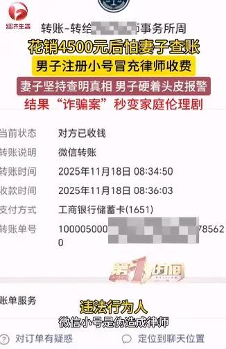 安徽芜湖,男子背着妻子偷偷花出去4500元后,才开始担心万一被妻子发现,自己怕是要凉。为了避免发生家庭大战,小伙注册一个小号,伪装成律师,以咨询为由,向该小号转账4500元。但三无小号却被妻子当成骗子,为了打消妻子的怀疑,男子只能硬着头皮去报案,给民警上演了一场“诈骗案”秒变家庭伦理剧的闹剧。 (消息来源:AHTV第一时间) 这男的姓啥,报道里没说。我们就叫他小王吧。小王那4500块钱,到底花哪儿了?是请朋友吃饭充面子,还是游戏里买了皮肤,或者打赏了哪个主播?他自己没说,但肯定不是能理直气壮跟老婆报账的开销。 钱花完了,心里开始打鼓。家里财政大权在老婆手里,每笔支出都得对上。这4500的窟窿,拿什么填?他灵机一动,想了个“天才”主意。 他偷偷注册了个新的微信号。头像换成正经的证件照,名字改成“律师”,朋友圈发几条法律相关的文章,看起来有模有样。然后,他用自己常用的微信,给这个“律师”转了4500块,备注写的是“法律咨询费”。 做完这一切,他松了口气。账对上了,钱有去处了。老婆问起来,就说之前遇到点麻烦,咨询了律师,已经解决了。完美。 可他忘了,他老婆是个细心人。对账的时候,看到这笔“律师咨询费”,心里直犯嘀咕。家里最近没打官司,也没听老公提过什么事需要找律师。她让小王把律师的联系方式给她,说要亲自打电话感谢一下,顺便问问具体情况。 小王一下子慌了。他上哪儿找个真律师去?只能支支吾吾,说律师很忙,不方便接电话。他越是这样,老婆越是怀疑。现在诈骗这么多,该不会是老公被人骗了吧?4500块可不是小数目。 老婆态度坚决,必须弄清楚。要么把律师叫出来见面,要么就去报警,查查是不是遇到了骗子。小王被逼到了墙角。报警?那不就全露馅了。不报警?老婆这关过不去,可能真以为他被骗了,更麻烦。 骑虎难下。他心一横,硬着头皮和老婆一起去了派出所。他想着,报个警走个过场,民警查不到这个“假律师”,最后只能不了了之,老婆或许就信了。 到了派出所,他一脸“委屈”,说自己被一个叫“张律师”的人骗了4500元咨询费。民警一听,诈骗案,立刻重视起来,详细询问转账记录、聊天过程。 可问着问着,民警发现不对劲。小王对“律师”的身份信息一无所知,所谓的“咨询”事由也含糊不清。调取他的微信记录一看,那个收款账号,注册的手机号居然是他自己的另一个号码。 民警经验丰富,几句话一套,小王额头冒汗,说话前言不搭后语。眼看瞒不住了,在民警严肃的询问和妻子疑惑的目光下,小王终于扛不住,把实情全抖了出来。 一场煞有介事的诈骗报案,瞬间变成了令人哭笑不得的家庭内部纠纷。民警是既好气又好笑。气的是他浪费警力,谎报警情;笑的是这哥们为了圆谎,真是绞尽脑汁,结果搬起石头砸了自己的脚。 最后,小王因为虚构事实扰乱公共秩序,被公安机关依法行政处罚。真是偷鸡不成蚀把米。老婆那边,一场更大的“风暴”恐怕还在后头。 为什么宁愿费这么大劲造假,也不敢跟老婆坦白?可能是怕吵架,可能是怕丢面子,也可能是家里沟通本来就有问题。 夫妻之间,钱怎么管,是个大学问。管得太紧,容易让对方感到压抑,甚至像小王这样,被迫想歪招。完全不管,也可能出乱子。关键还是信任和沟通。有了信任,偶尔一笔说不清的钱,好好解释,也许就能过去。缺乏信任,再完美的账目,也挡不住心里的猜疑。 小王用最复杂的方式,解决了一个本来简单的问题。如果一开始就老实交代,顶多被唠叨几句,何至于闹到派出所,还挨个处罚。撒谎就像滚雪球,为了圆一个谎,需要撒更多的谎,最后雪球越滚越大,把自己压垮。 过日子,还是简单点、真诚点好。耍小聪明,往往会有更尴尬的结局在等着。 各位读者你们怎么看?欢迎在评论区讨论。