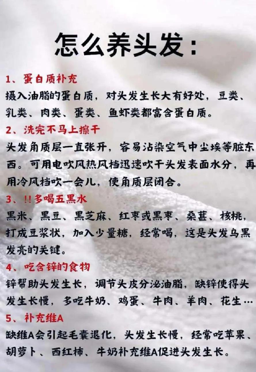 头发疯长的方法 1,蛋白质补充 2,洗完不马上擦干 3,多喝五黑水 4,吃含锌的