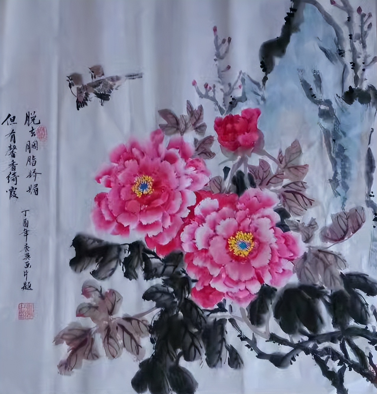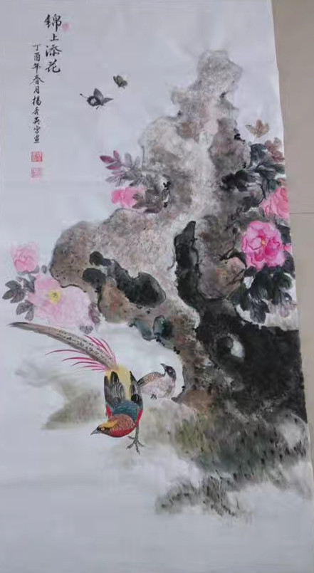 杨秀英老师的绘画技法,最打动人的是那份细腻中透出的生命力。她擅长用线条勾勒出花鸟的灵动,色彩明丽却不俗气,构图讲究主次分明,整体画面既有传统韵味,又充满现代感。