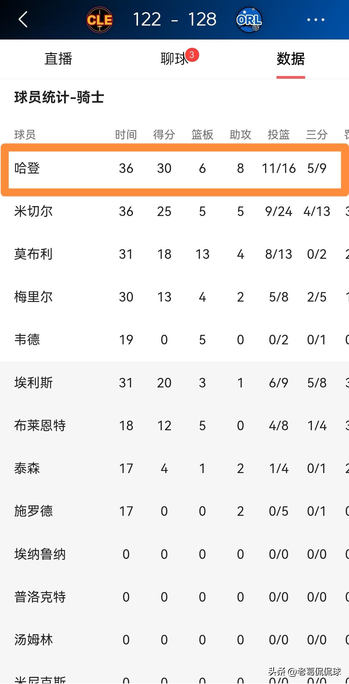 骑士主帅阿特金森真是太会夸人了!在今天骑士客场以122:128输给魔术的赛后采访中,阿特金森教练看到了心腹爱将哈登的表现,言语中充满了赞赏。 阿特金森教练这样说道:“哈登的表现非常棒,这就是哈登经典式的表现。对手一开始采取了换防,一到五号位的无限换防,然而哈登迫使对手放弃了这种策略。” 正如阿特金森教练说的那样,本场比赛哈登打出了一场标志性的比赛,无论哈登面对哪名魔术球员的防守,哈登都能够得分。