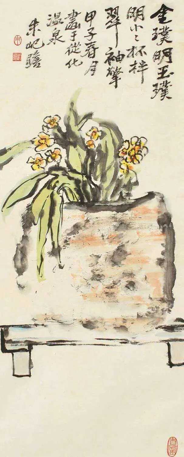 朱屺瞻 凌波仙子。朱屺瞻系我国著名的寿星画家,画坛的一代宗师。曾两度赴日本学习油