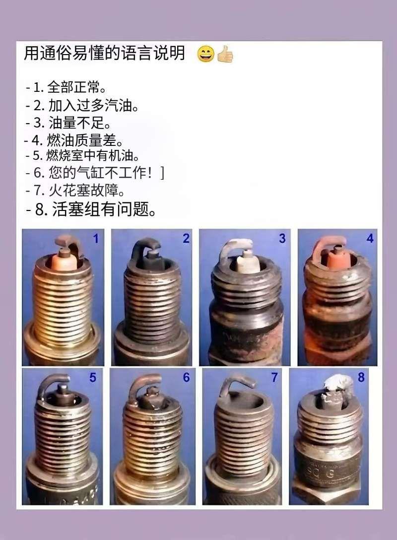 你的火花塞在给你发信号,只是你没看懂!别瞎猜了!你的火花塞在给你发信号,只是你没看懂! 这个视频就是把“汽车语言”翻译成大白话的神器👇 很多司机只按规定换火花塞,根本不看它长啥样。 这可太亏了!火花塞上的积碳颜色,就像发动机的“血常规”,能在故障灯亮、需要大修之前,提前告诉你发动机哪里出了问题。 赶紧收藏这篇干货,关键时候能救急!✅ 下面是看图速查指南(详细内容在视频里): 1️⃣ 完美状态:发动机运转平顺,油耗正常。 2️⃣ 喷油过多:混合气太浓,积碳把发动机“闷”住了。 3️⃣ 供油不足:汽油太少,混合气太稀,火花塞过热。 4️⃣ 劣质燃油警告:加油站的“歪油”里的添加剂正在毁掉你的火花塞。 5️⃣ 烧机油了:机油跑进燃烧室,接下来活塞环或气门室盖可能要出问题。 6️⃣ 缺缸抖动:这个气缸已经“罢工”了。 7️⃣ 火花塞报废:它已经坏了,火花乱跳,根本点不到该点的地方。 8️⃣ 最糟情况:活塞组件出大问题,甚至可能活塞已经碎了。 🔧 懂这些,能帮你在汽修店省下一大笔诊断费。 ▶️ 你的车火花塞是什么颜色?评论区告诉我,咱们一起分析! 汽车小技巧