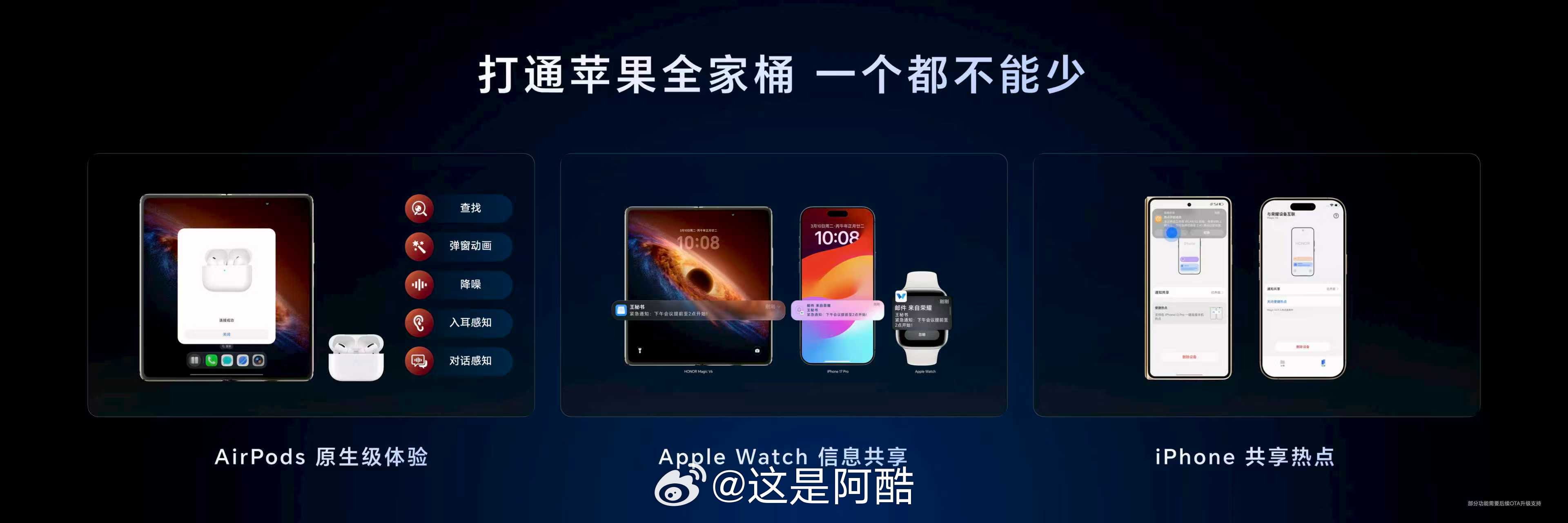 通过行业首发的Mac一碰即传,并支持苹果办公三件套的编辑,展开秒变Mac扩展屏,还能一键登录iCloud查看相册。此外,还支持AirPods原生级体验、Apple Watch信息共享