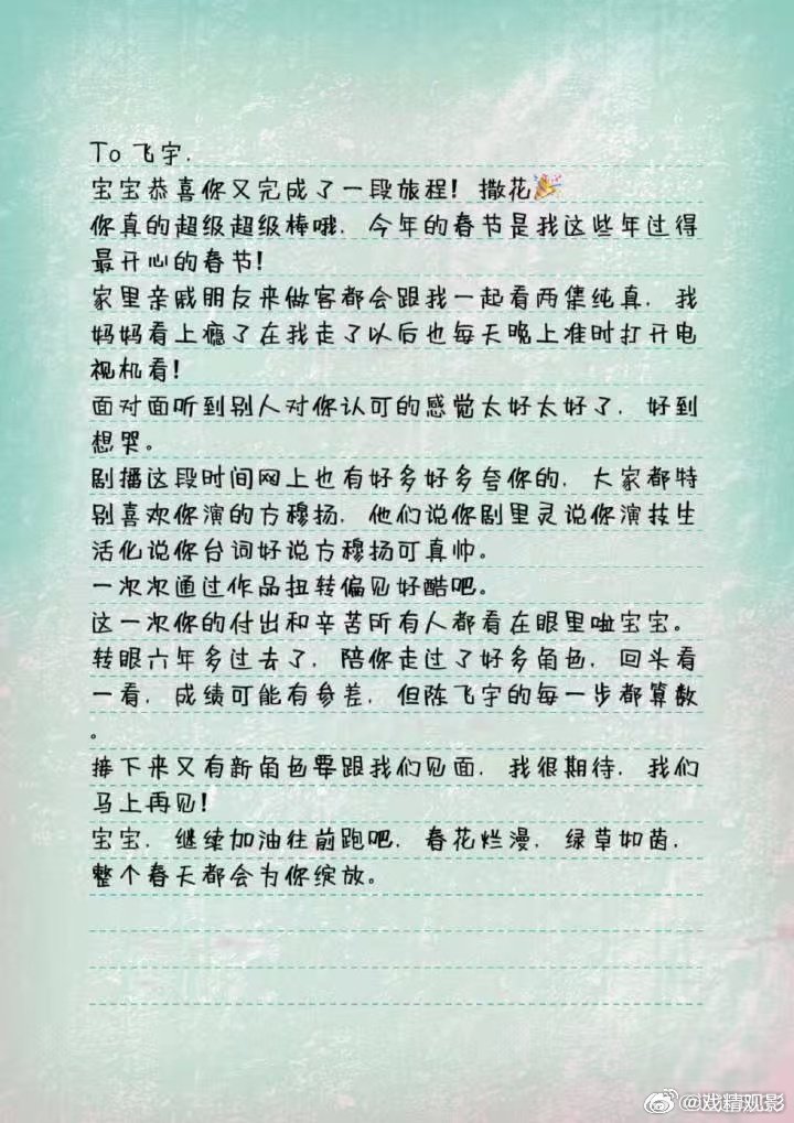 陈飞宇微博评论区纯真年代的爱情 刷到陈飞宇评论区直接被戳中,他发语音告别方穆扬,粉丝写长文回应,这种双向奔赴的爱意温柔又滚烫,太好哭了。