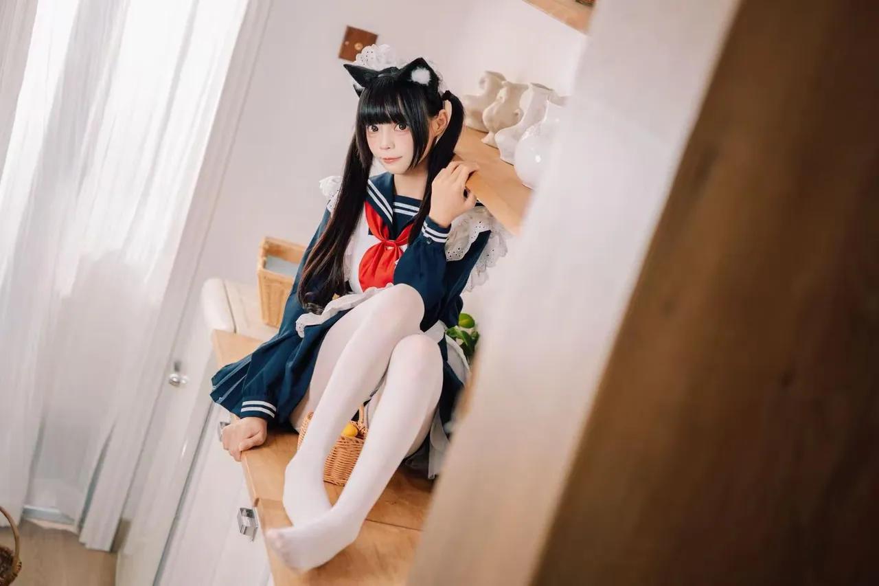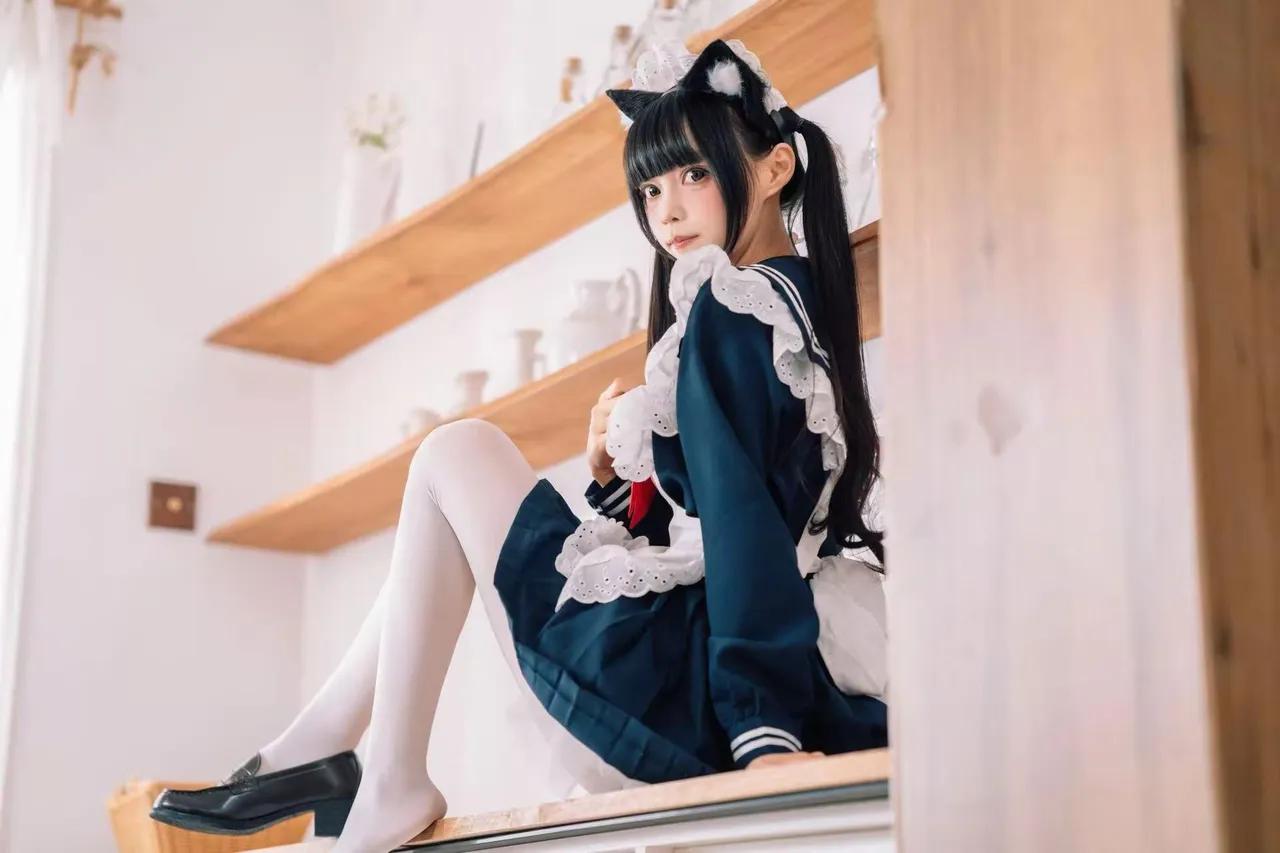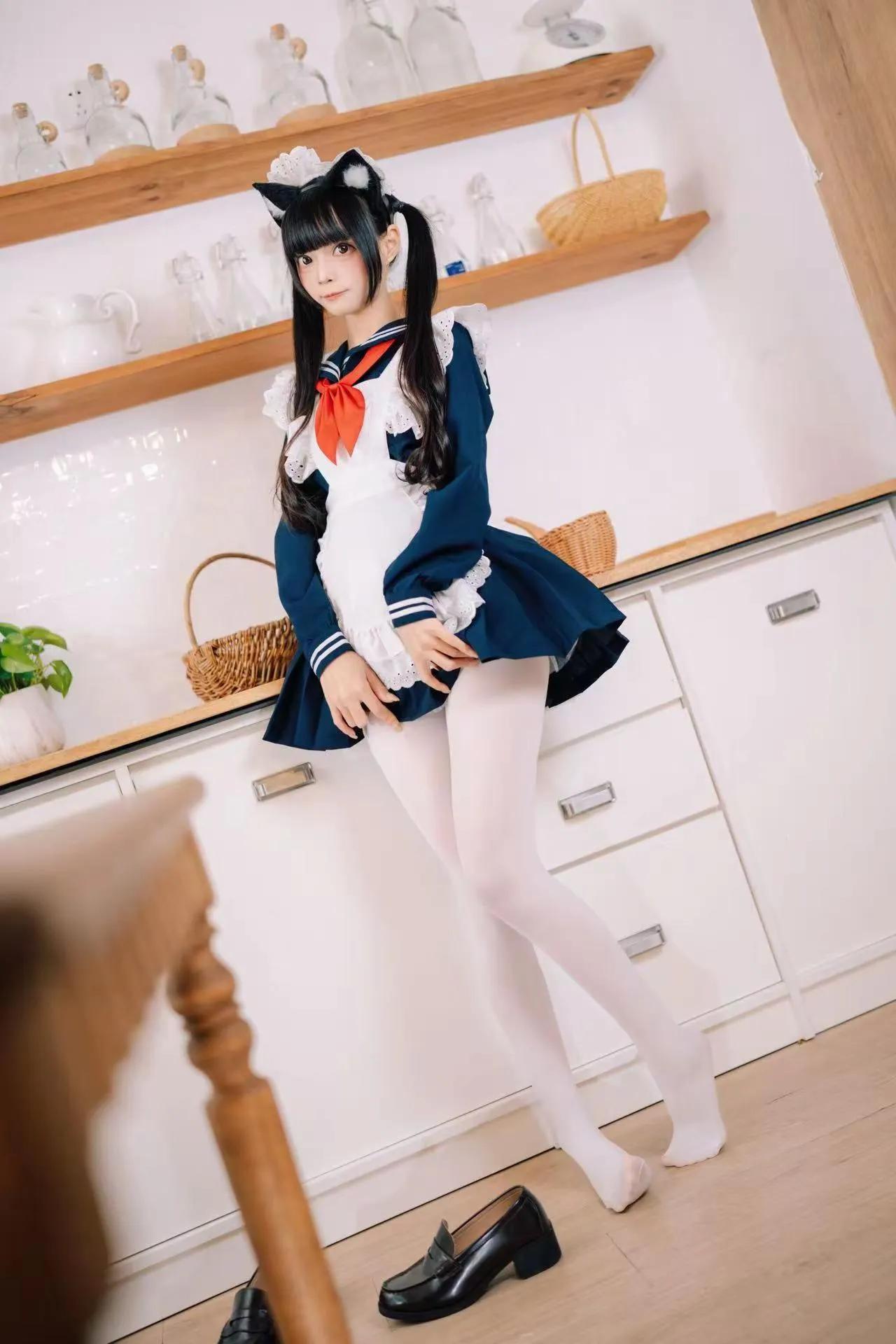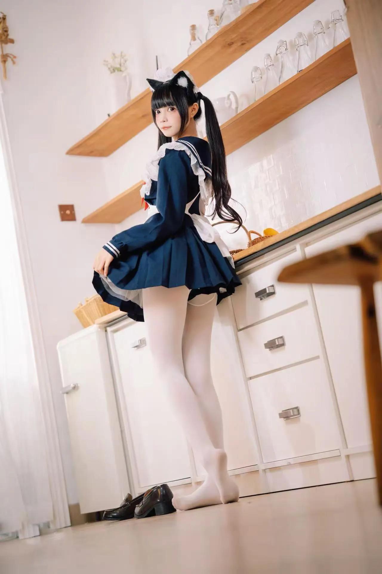 可爱猫耳少女在温馨厨房摆拍,日常穿搭超可爱!🐱👗🍴
