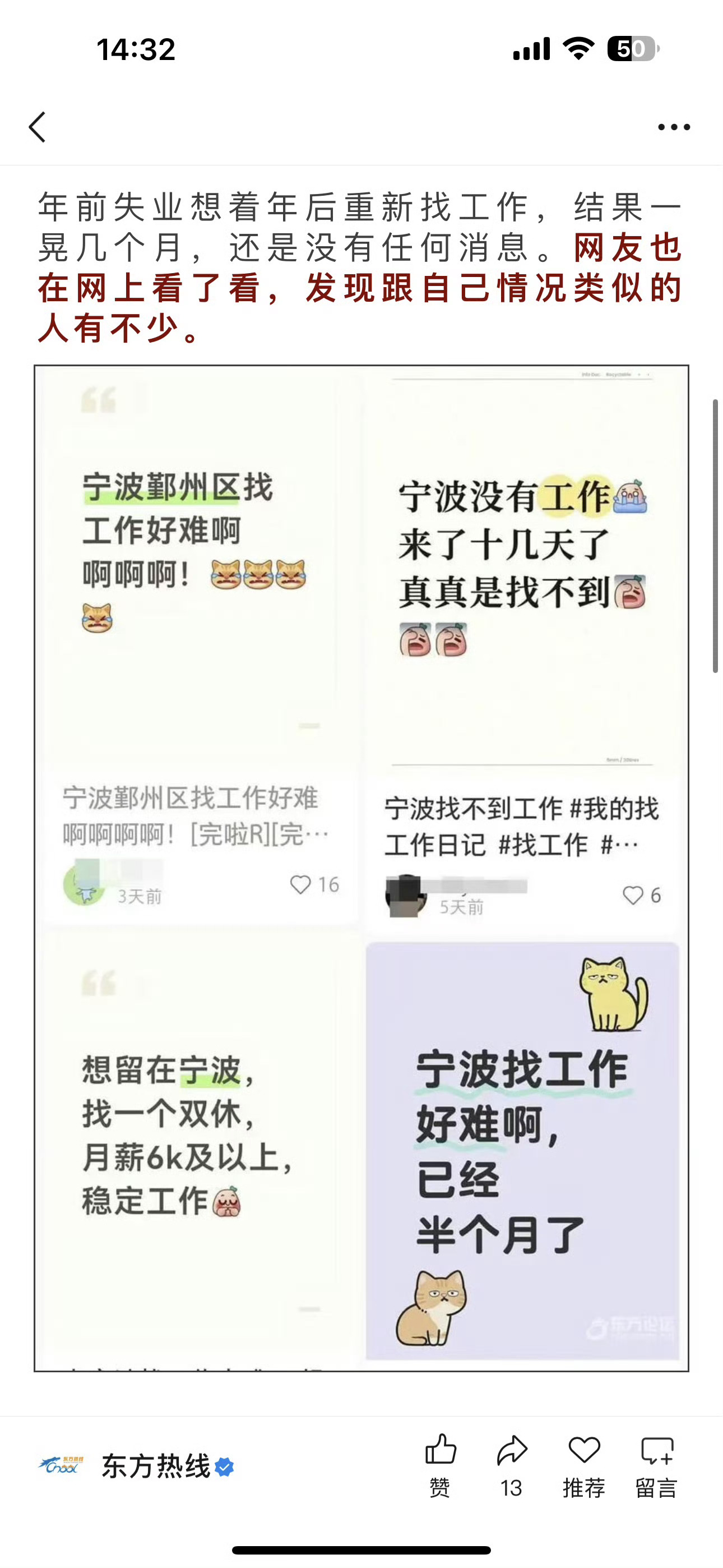 宁波网求助失业很久了找工作好难 ?从年前找到年后,回复都寥寥无几!网友齐齐共鸣,
