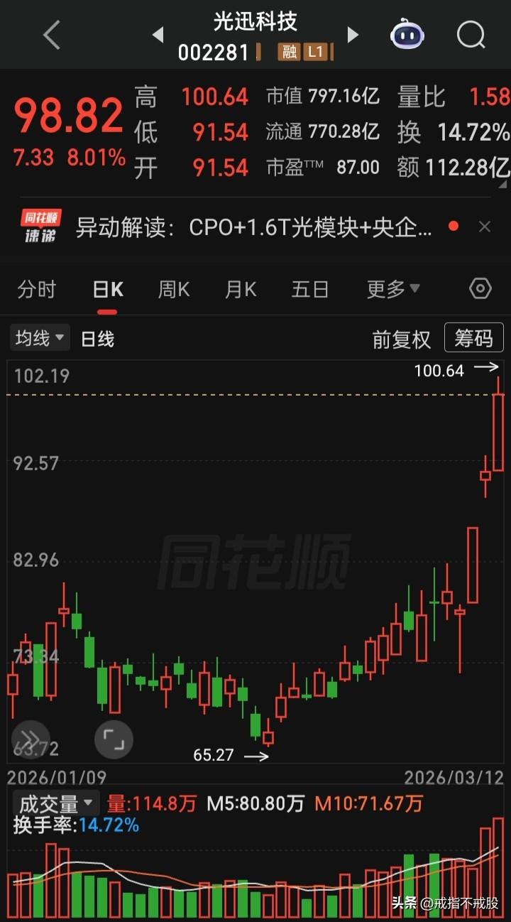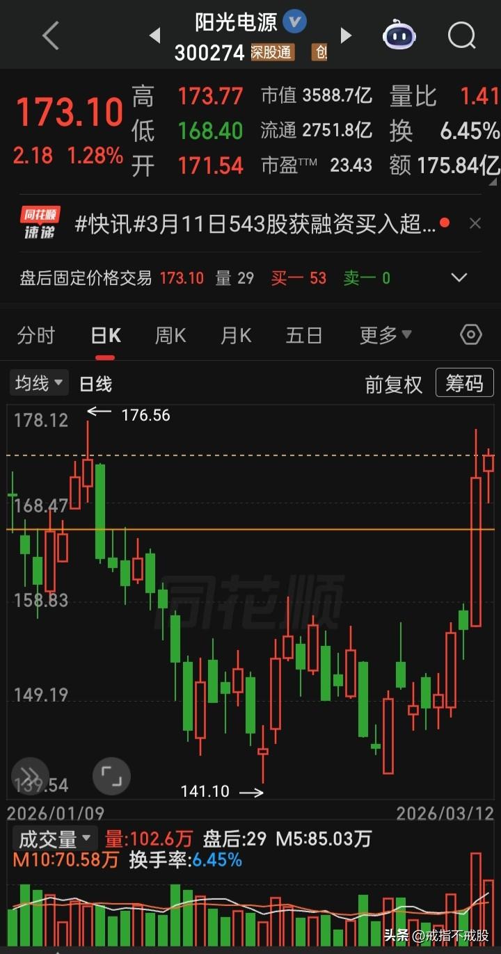 【每日观察2026.03.12】美以对伊中东战火持续第13天中,不总成交额24606亿比上个交易日缩量677亿、上涨1494家下跌3893家、涨停64家跌停6家的情况下,谁在成交额前十 华工科技277.38亿,跌5.17% 阳光电源175.84亿,涨1.28% 中国能建174.58亿,涨停 金凤科技146.91亿,涨3.47% 新易盛 133.09亿,跌3.68% 中际旭创129.06亿,跌3.58% 天孚通信116.19亿,涨0.92% 宁德时代115.38亿,跌0.33% 光迅科技112.28亿,涨8.01% 华胜天成111.85亿,跌2.78%