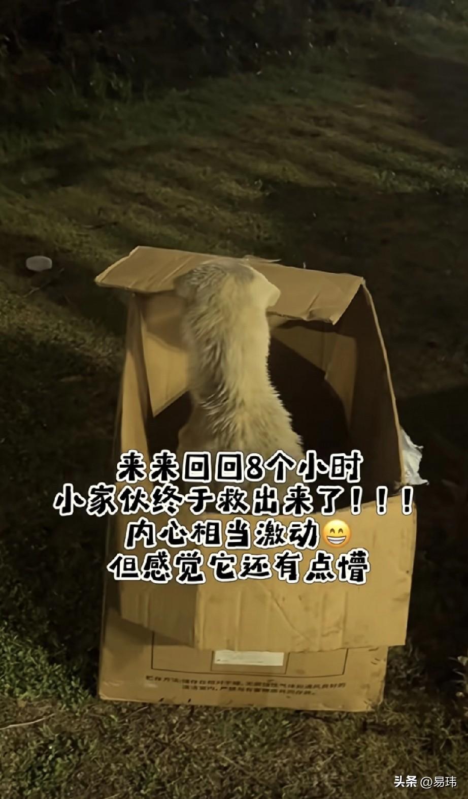 泪目了!这天一位小哥哥开车送家人回家,当他刚下高速的时候,听到路边的排水沟有狗狗的求救声,于是善良的他就下车查看,走近一看看到一只可怜的流浪狗的右前爪受伤了,所以它爬不上来。 小哥哥看了之后非常同情它的遭遇,于是决定救助它,可谁知它很害怕人类,小哥哥多次尝试把它弄上来都失败了,一看到小哥哥靠近它就跑开,即使小哥哥拿来一块瓦楞板,想让它自己爬上来也失败了。就这样时间一分一秒过去,知道晚上小哥哥才在家人的帮助下把它救了上来,之后就把它送去了宠物医院检查治疗,在它出院后,就收养了它,相信在小哥哥的照顾下,它也会越来越好的。