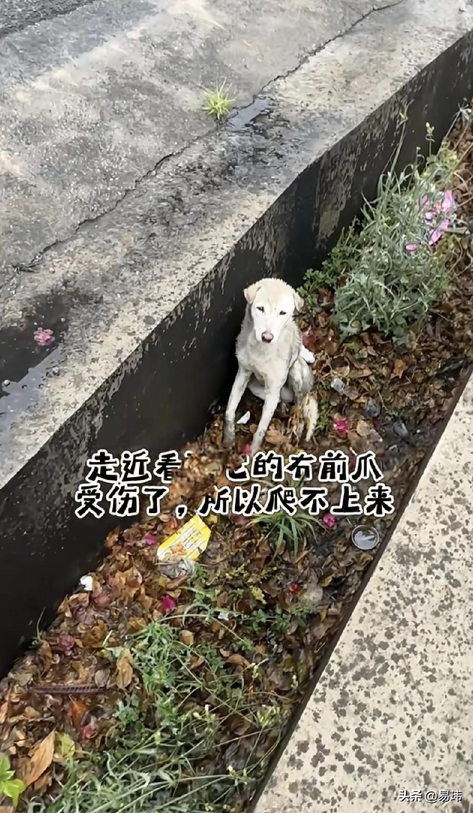 泪目了!这天一位小哥哥开车送家人回家,当他刚下高速的时候,听到路边的排水沟有狗狗
