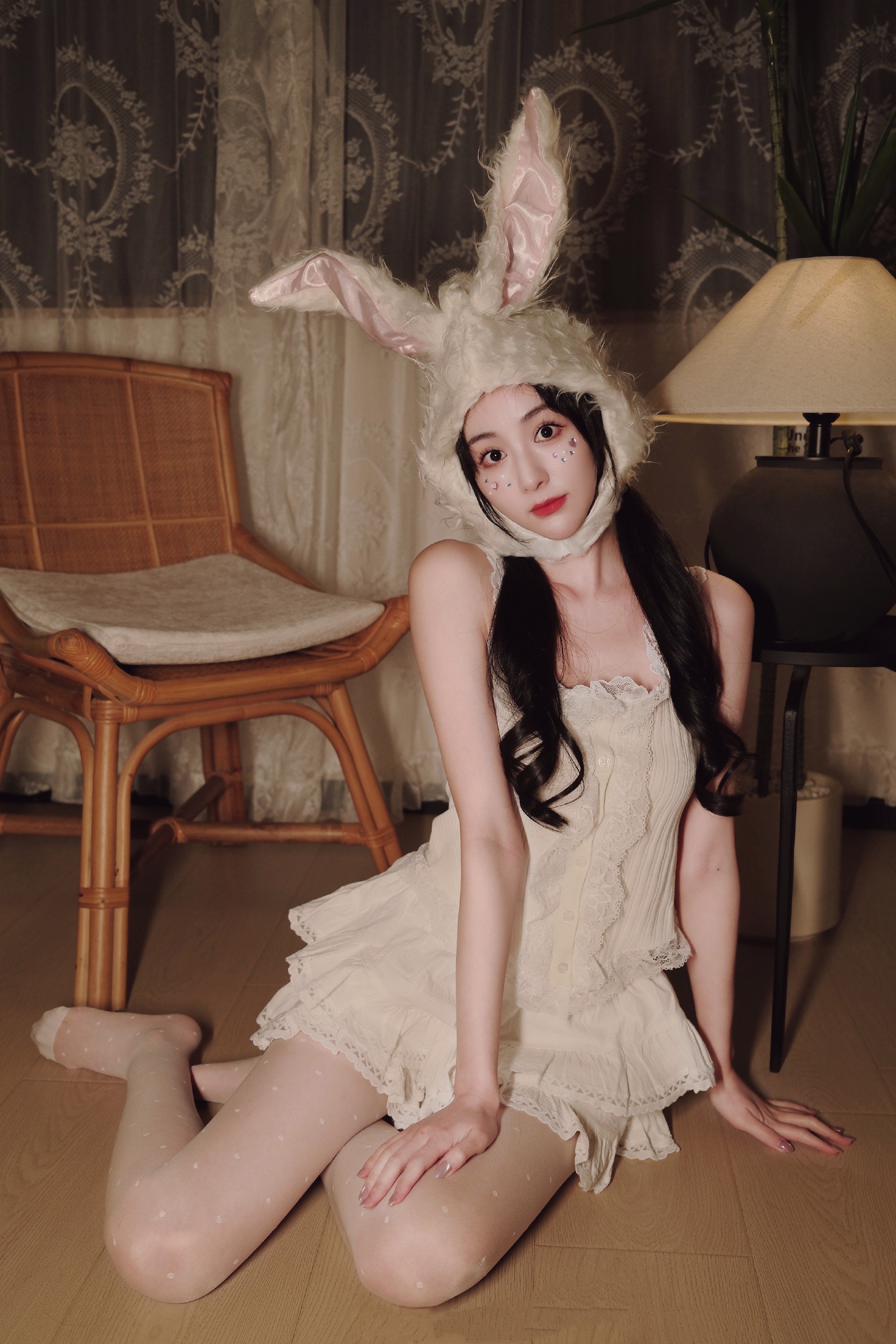 宋弈星,圣诞氛围写真,小短裙丝袜点缀,甜美可爱的“兔宝宝”。宋弈星[超话]